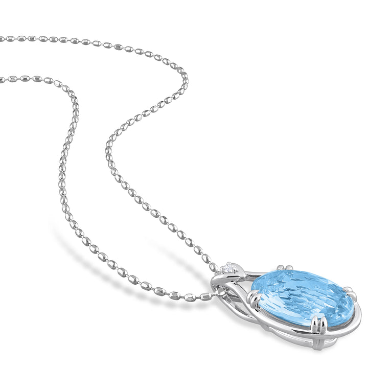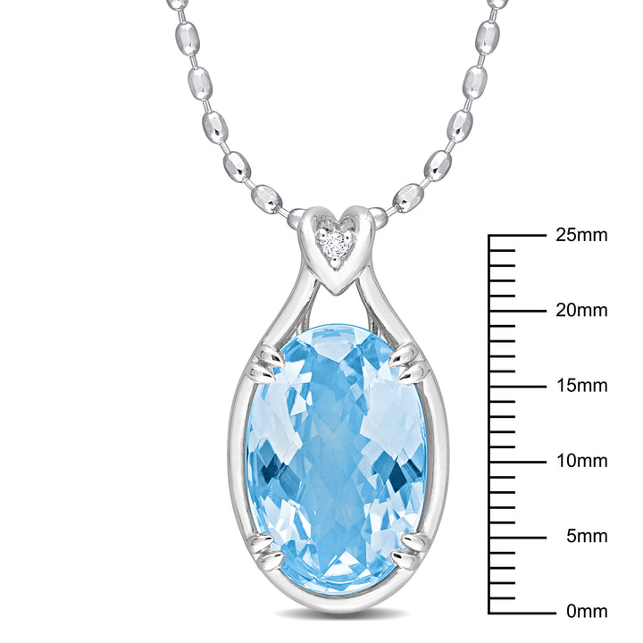 Crafted in sterling silver with an 18x12mm oval checkerboard-cut sky blue topaz and a 1.8x1.8mm round white topaz. Suspended on an 18-inch cable chain with a spring-ring clasp.