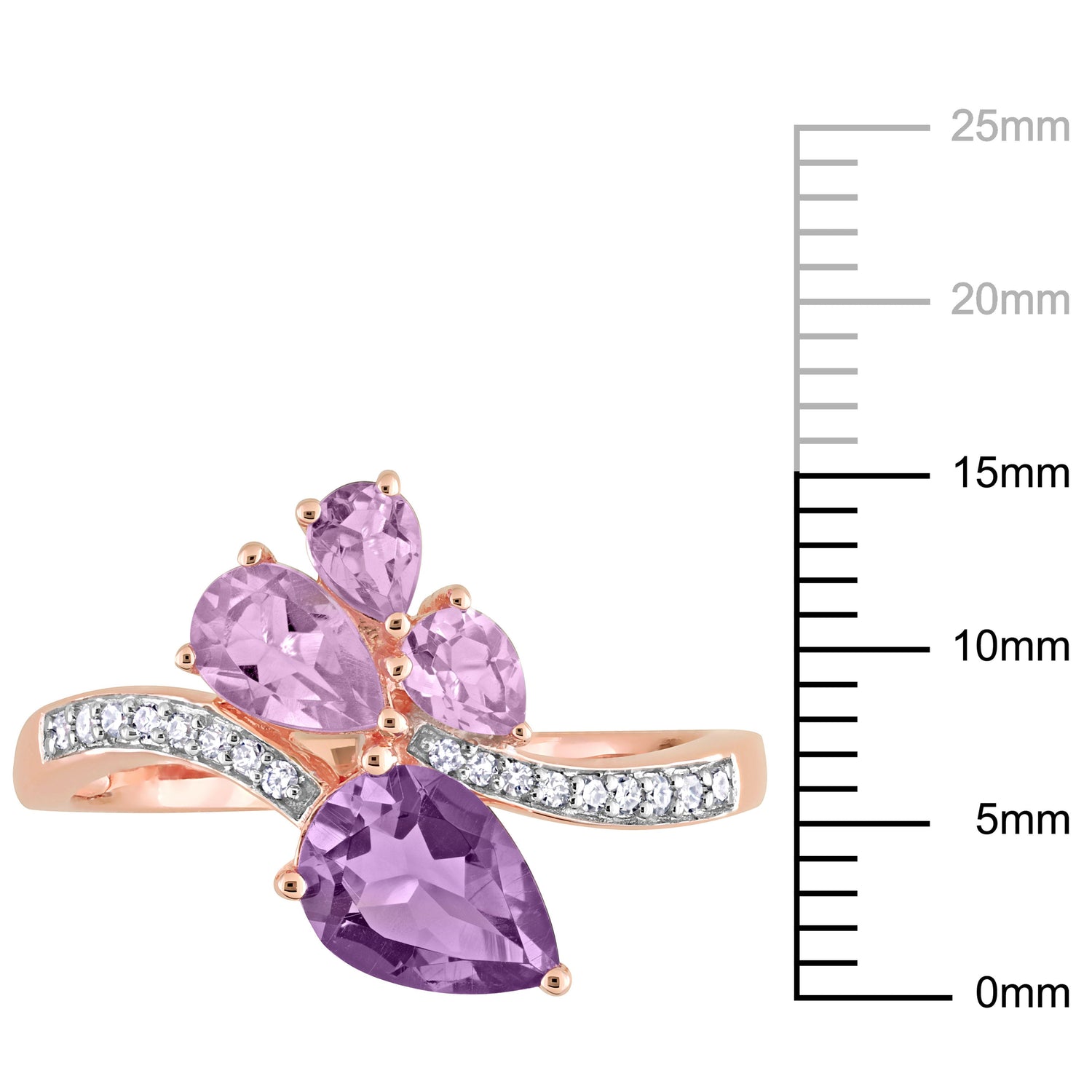 Crafted in 14K rose gold with 1 3/5ct TGW pear-cut amethyst and rose de France gemstones, and 1/10ct TDW round-cut diamonds.