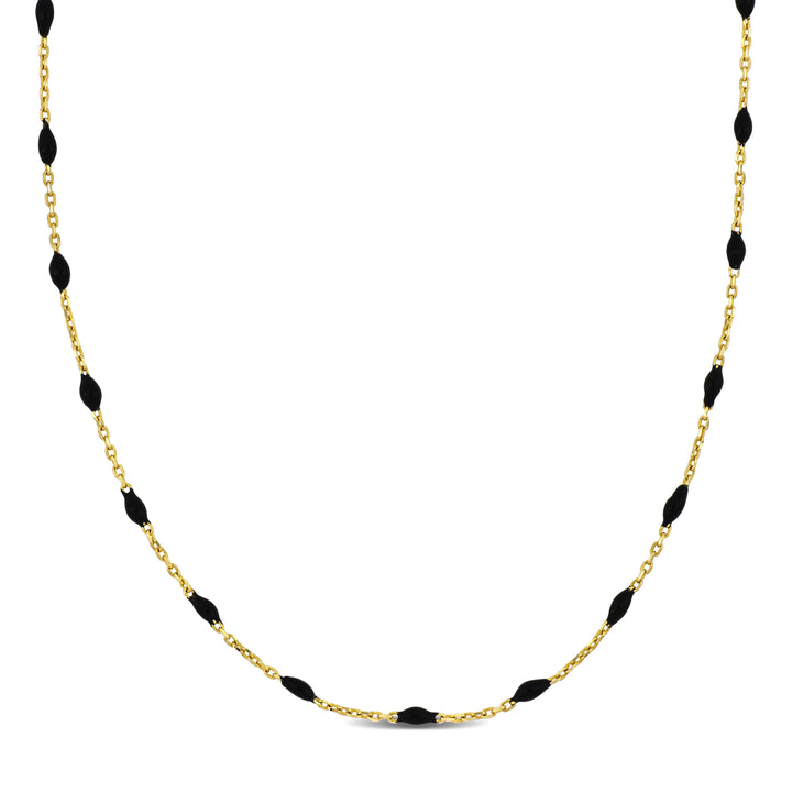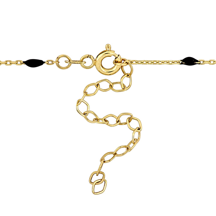 Crafted in 14K yellow gold. Features black enamel stations evenly spaced along a 16-inch chain with a 2-inch extender. Secured with a spring ring clasp.