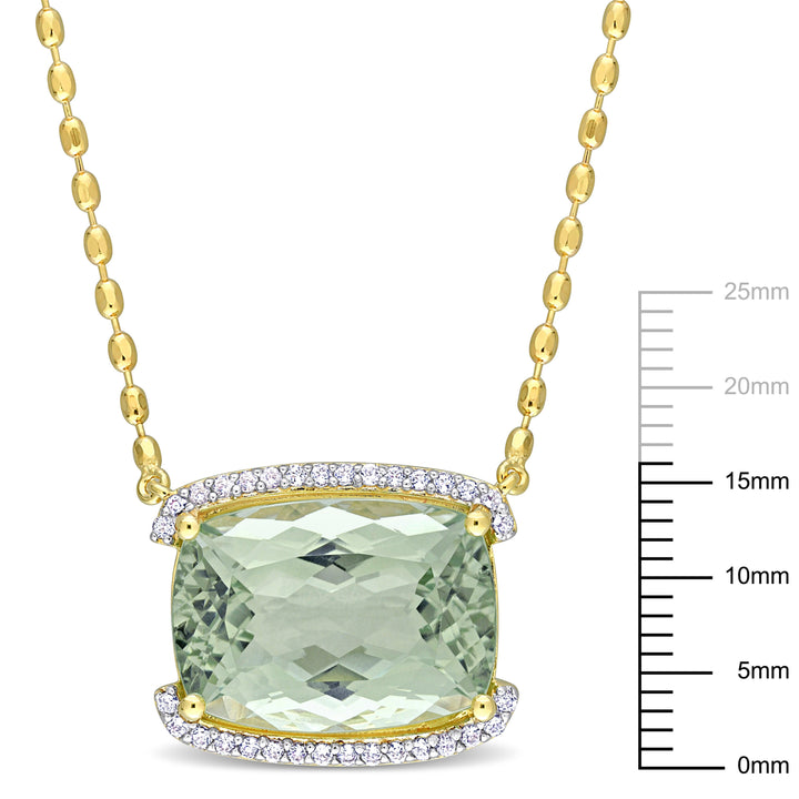 Mimi & Max Womens 16 5/8ct TGW Cushion-Cut Green Quartz and White Topaz Semi-Halo Necklace Yellow Plated Sterling Silver
