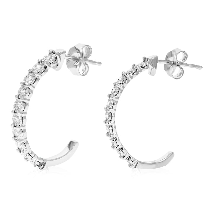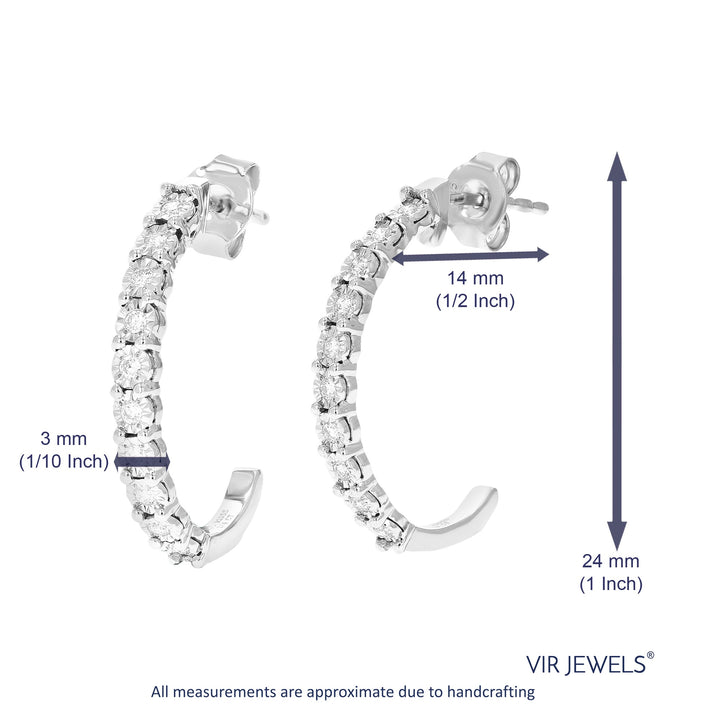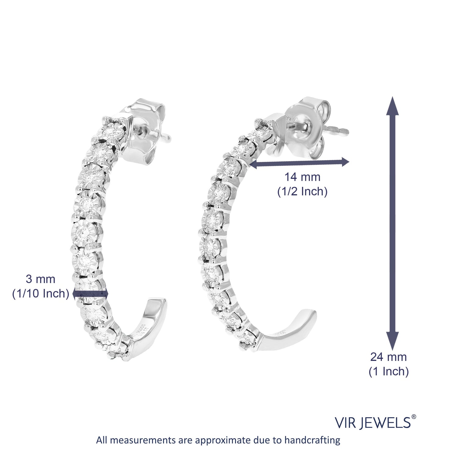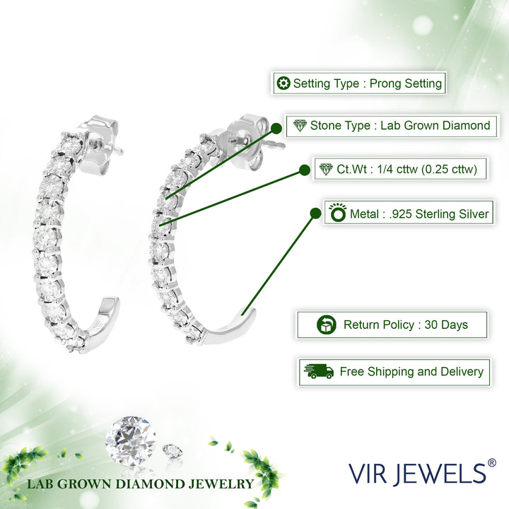 Crafted in .925 sterling silver with 1/4 cttw of lab-grown round diamonds (H-I color, SI clarity). Earring dimensions: 1 inch (24mm) in height and 1/10 inch (3mm) in width.
