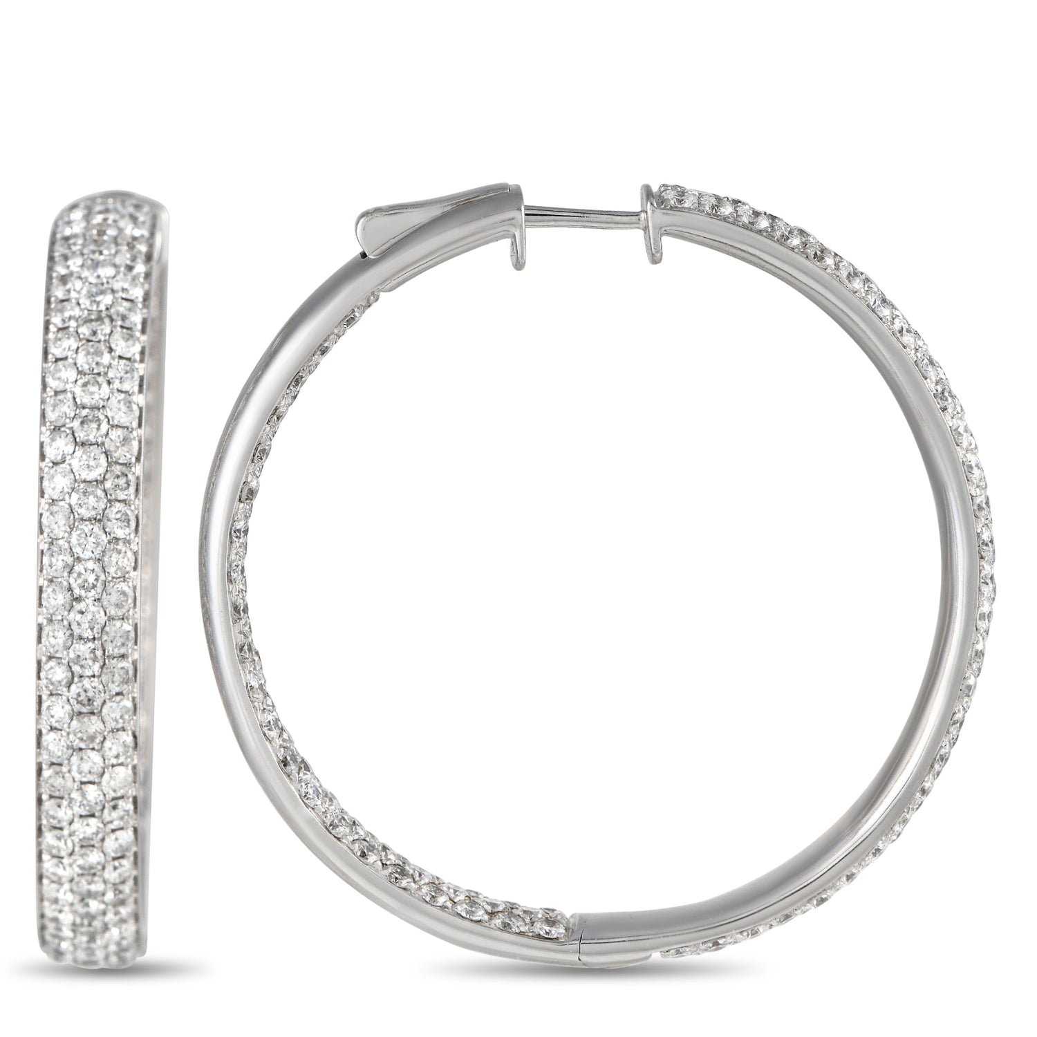 LB Exclusive 14K White Gold 6.10ct Diamond Inside-Out Hoop Earrings