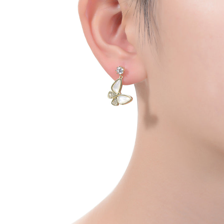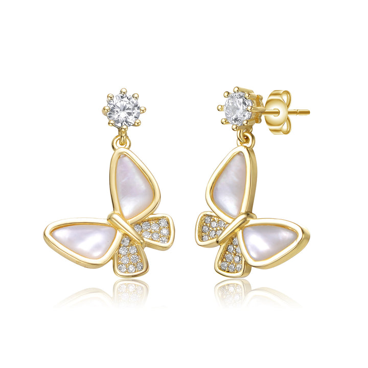 14K Gold Plated Cubic Zirconia Butterfly Drop Earrings