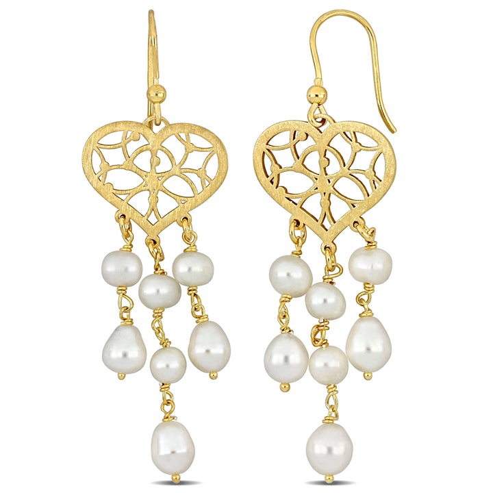 Mimi & Max 6-6.5mm Cultured Freshwater Pearl Chandelier Style Heart Drop Earrings in Yellow Plated Sterling Silver