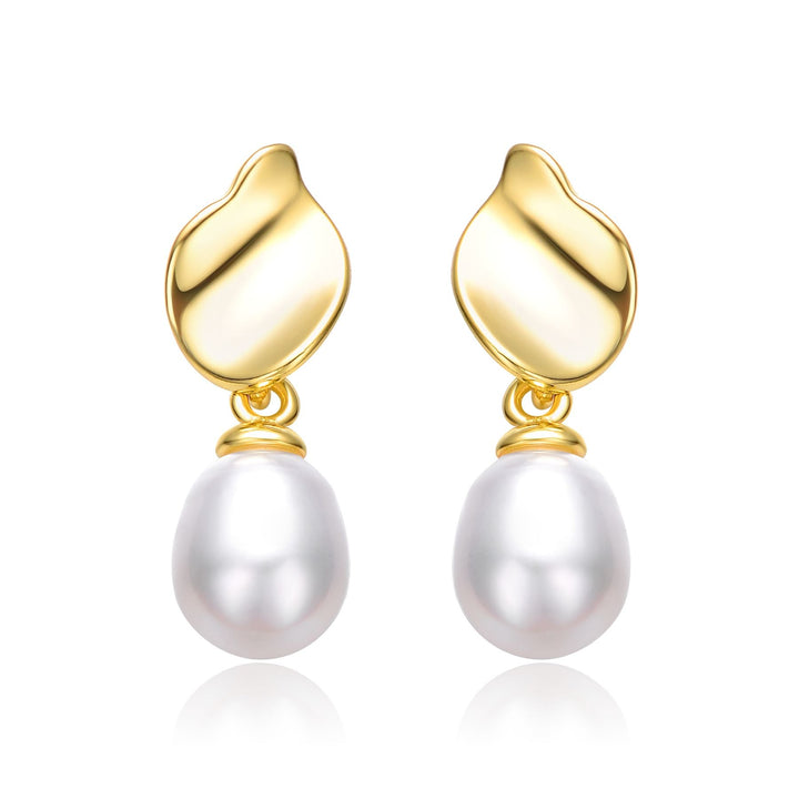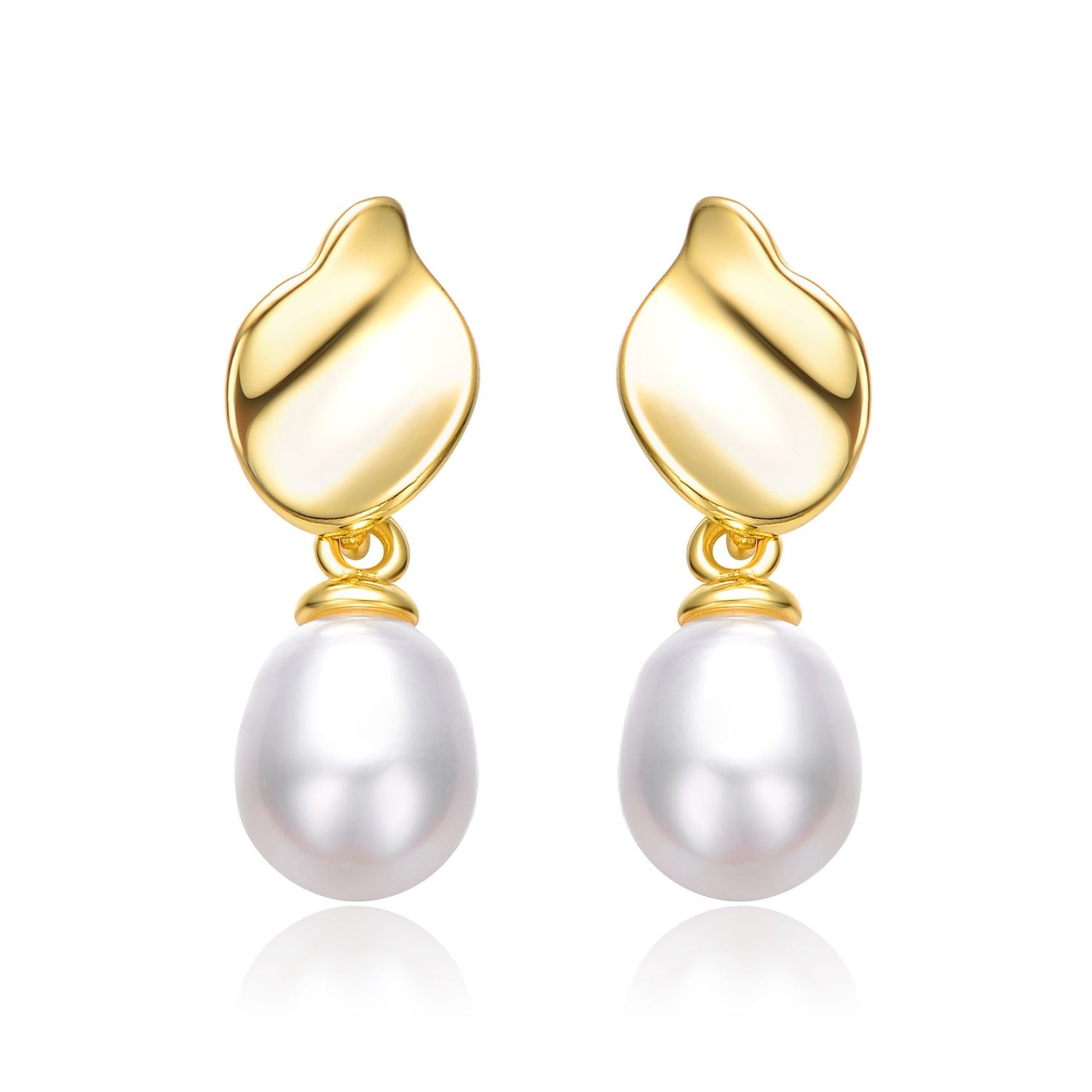 Crafted in 14K yellow gold-plated sterling silver with genuine oval white pearls. Secured with butterfly backs. 20mm drop length.