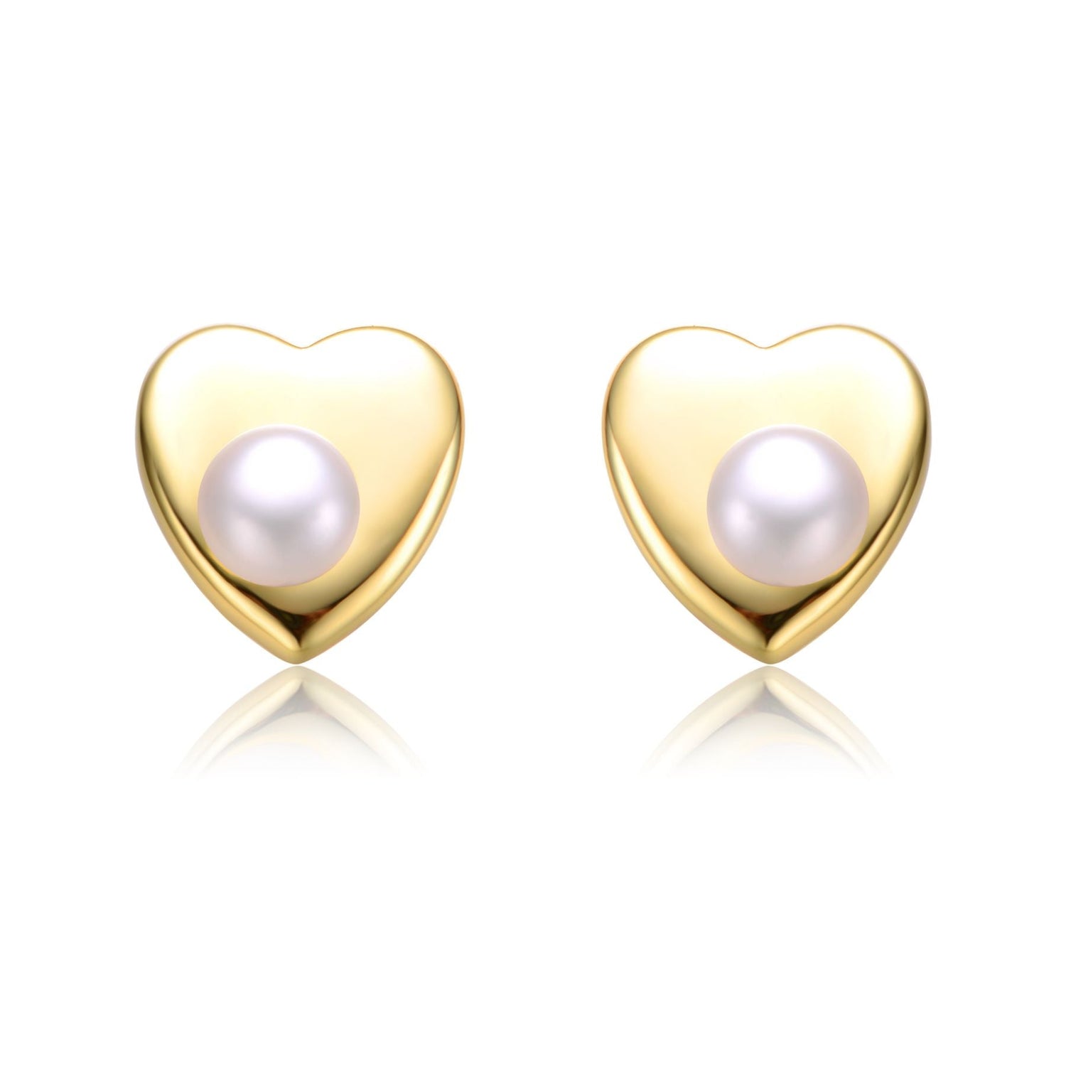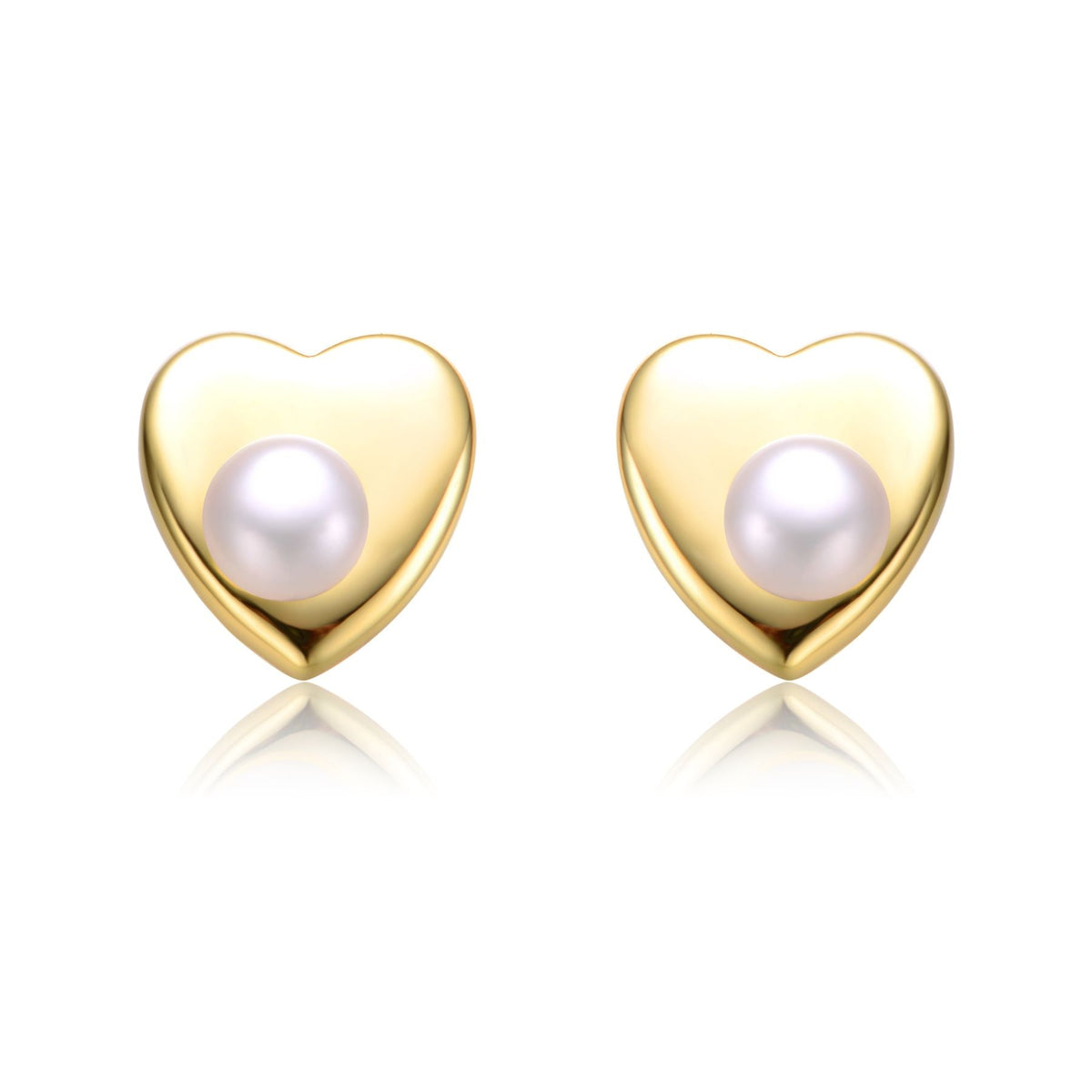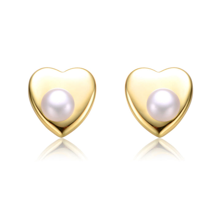 Sterling Silver 14k Yellow Gold Plated with White Pearl Heart Stud Earrings