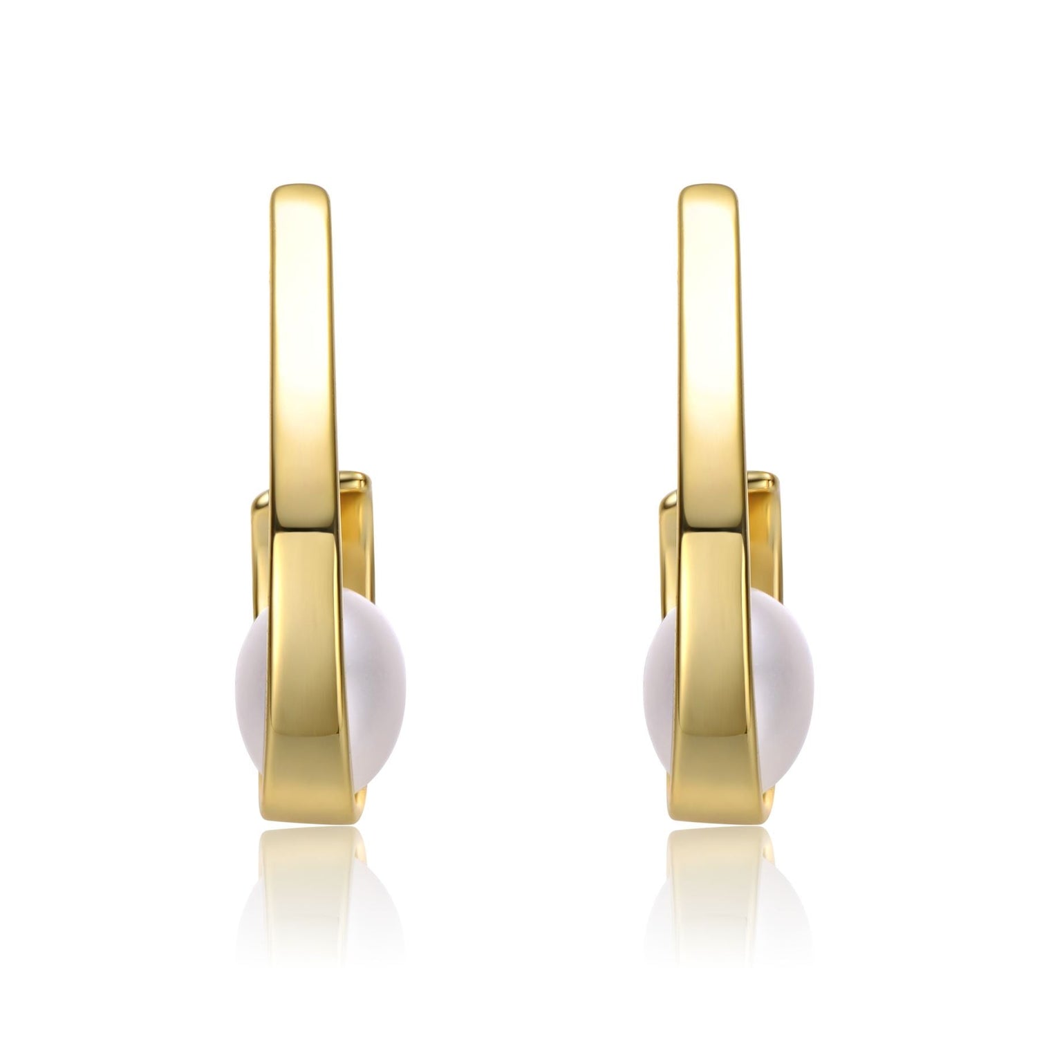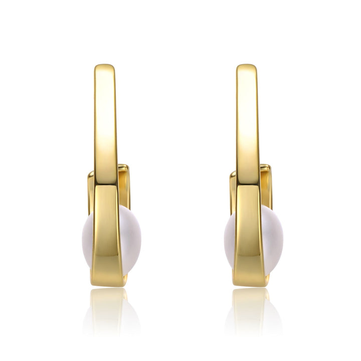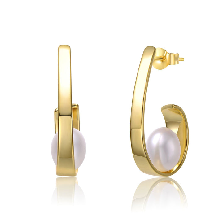 Sterling Silver 14k Yellow Gold Plated with White Pearl Ribbon Half-Hoop Drop Earrings