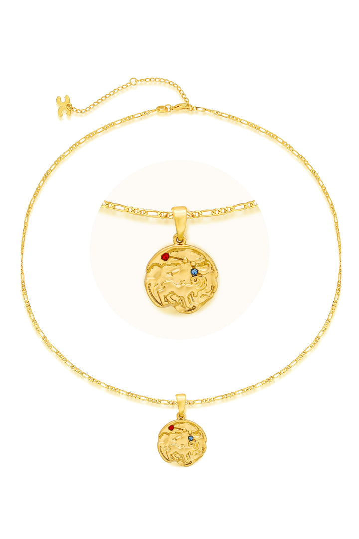 Gold Sculptural Zodiac Sign Pendant Necklace Set-Aries