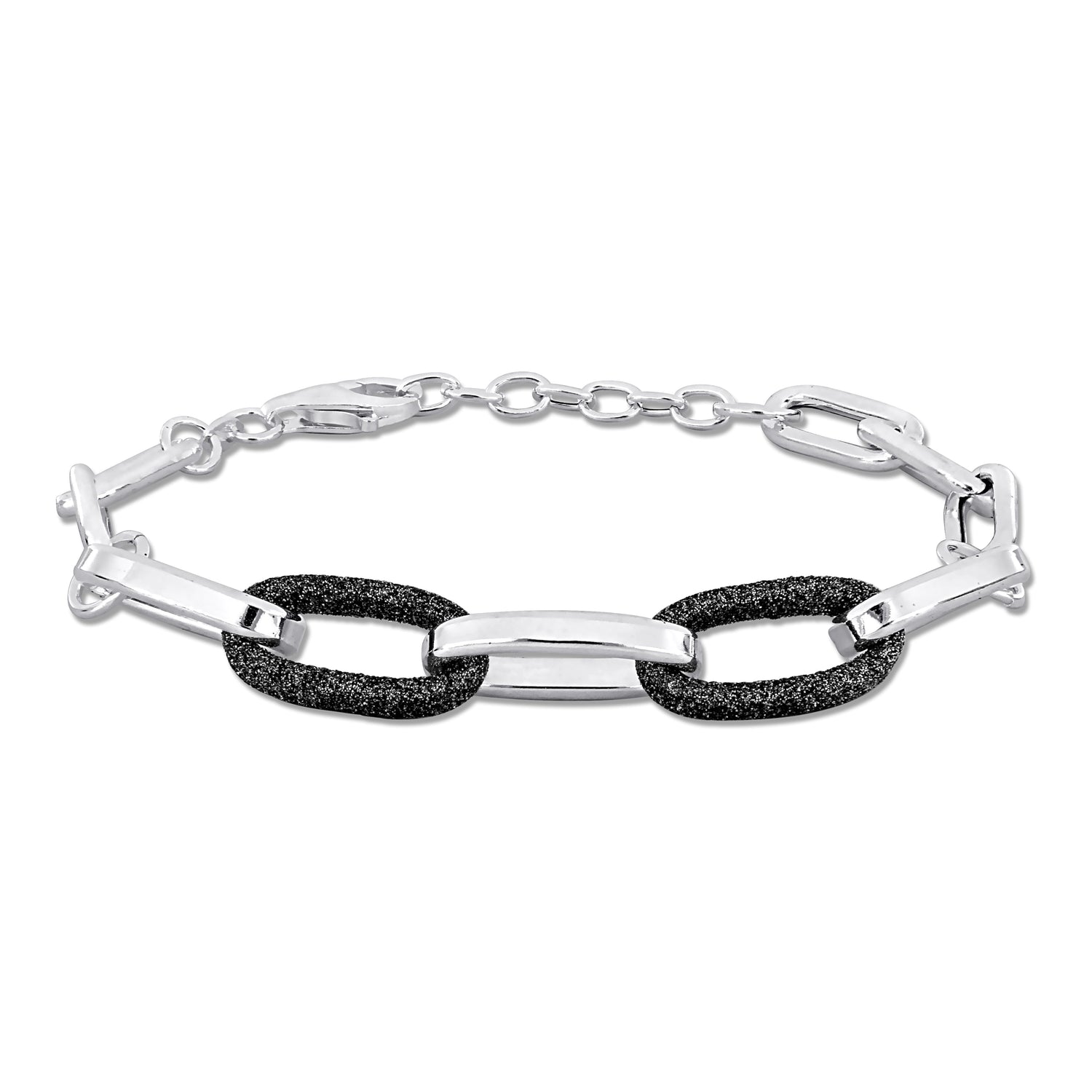 Mimi & Max Oval Link Bracelet w/ Black Sparkle Enamel in Sterling Silver - 8+1 in.