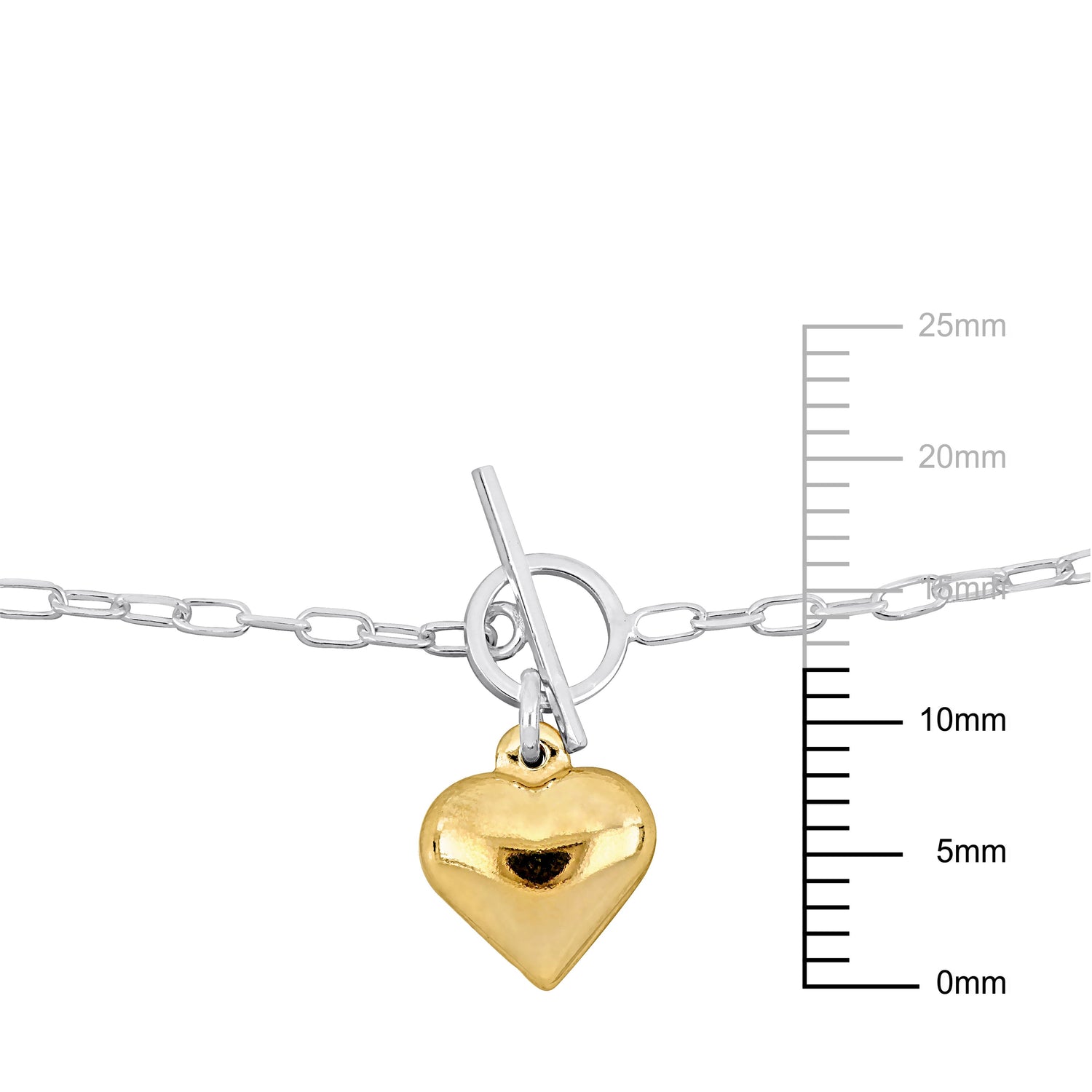 Crafted with yellow heart-shaped charm and sterling silver. 7.5 inches in length with toggle clasp. Cable chain design.