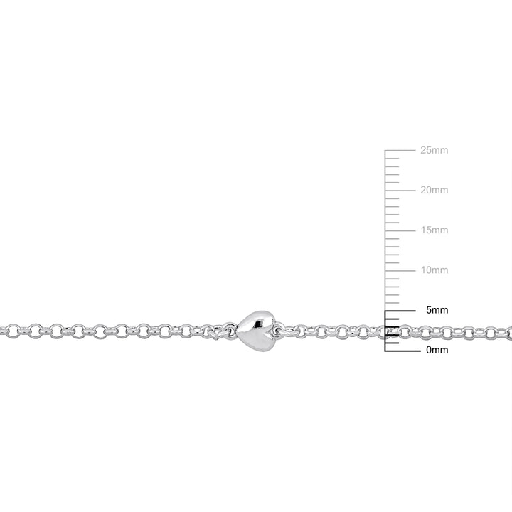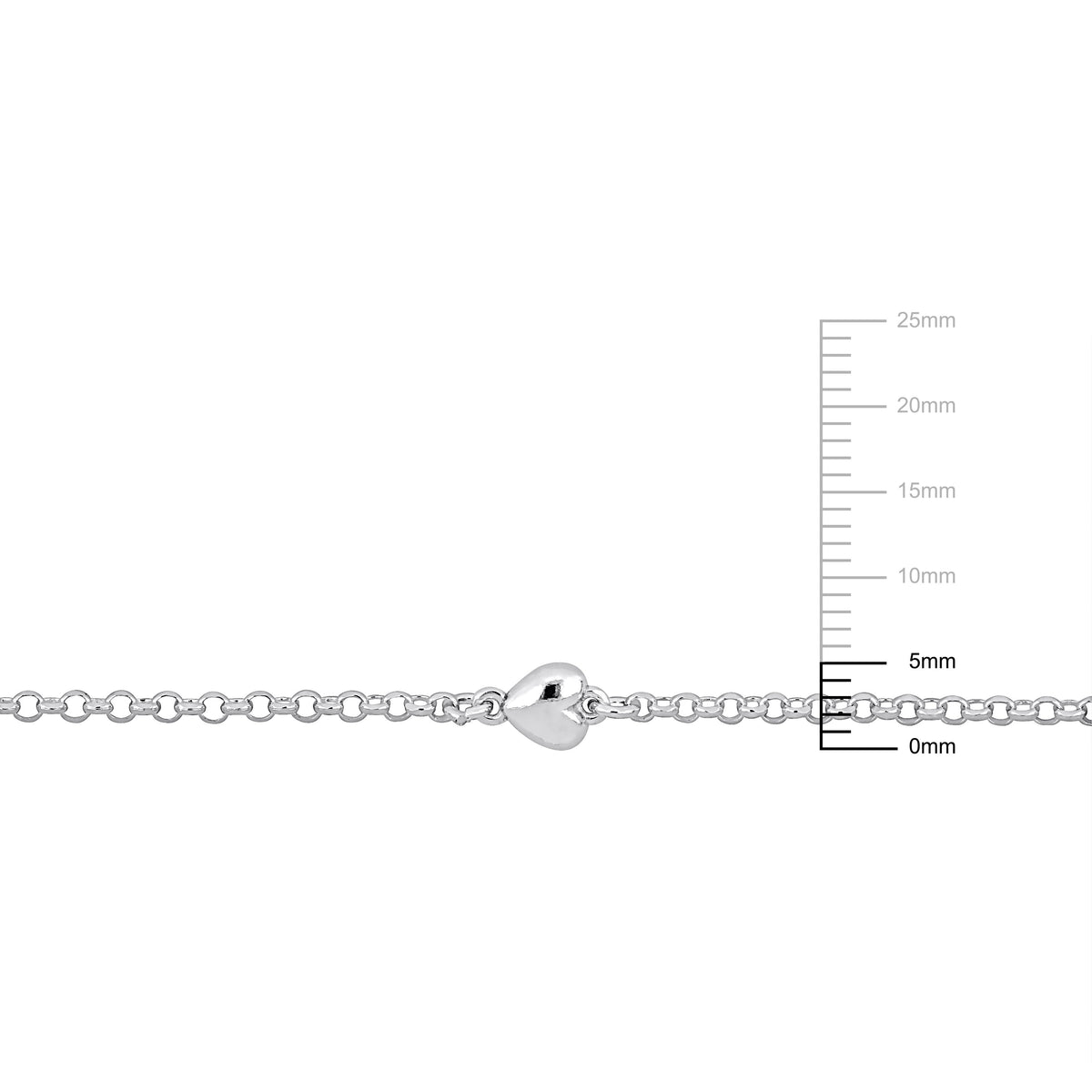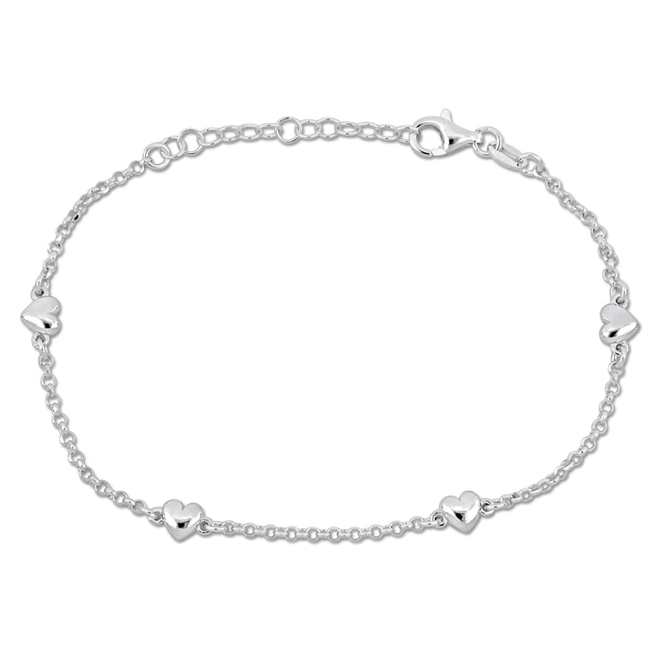 Mimi & Max Four Heart Charm Station Bracelet on diamond Cut Rolo Chain in Sterling Silver- 7+1 in.