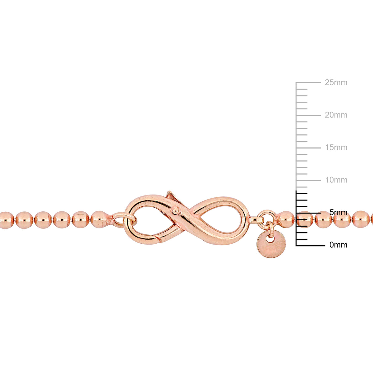 Crafted in rose silver with pink beads and infinity clasp. Length: 7.5 inches.