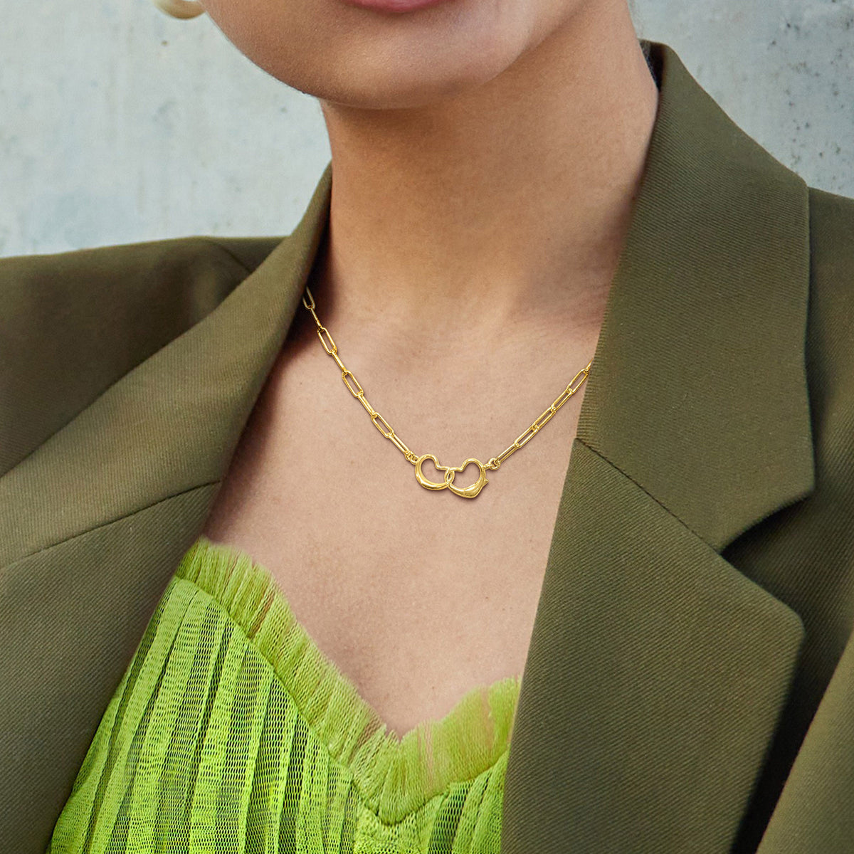 This Mimi & Max Double Heart Charm Clasp Necklace in Yellow Silver is the perfect gift to symbolize love and friendship. Featuring a beautiful oval paperclip link chain and interlocking double heart charms, this necklace is perfect for layering or wearing on its own. The yellow silver color adds an elegant touch, making this necklace ideal for everyday wear or as a thoughtful gift for a loved one.