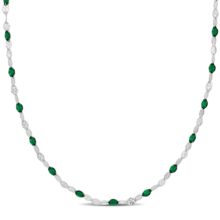 Mimi & Max Green Enamel Bead Station Necklace in Sterling Silver - 18 in.