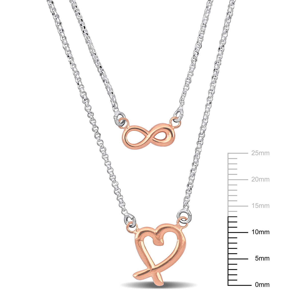Mimi & Max Pink Infinity and Heart Double Strand Necklace in Sterling Silver - 16+18 w/ 1 in. ext