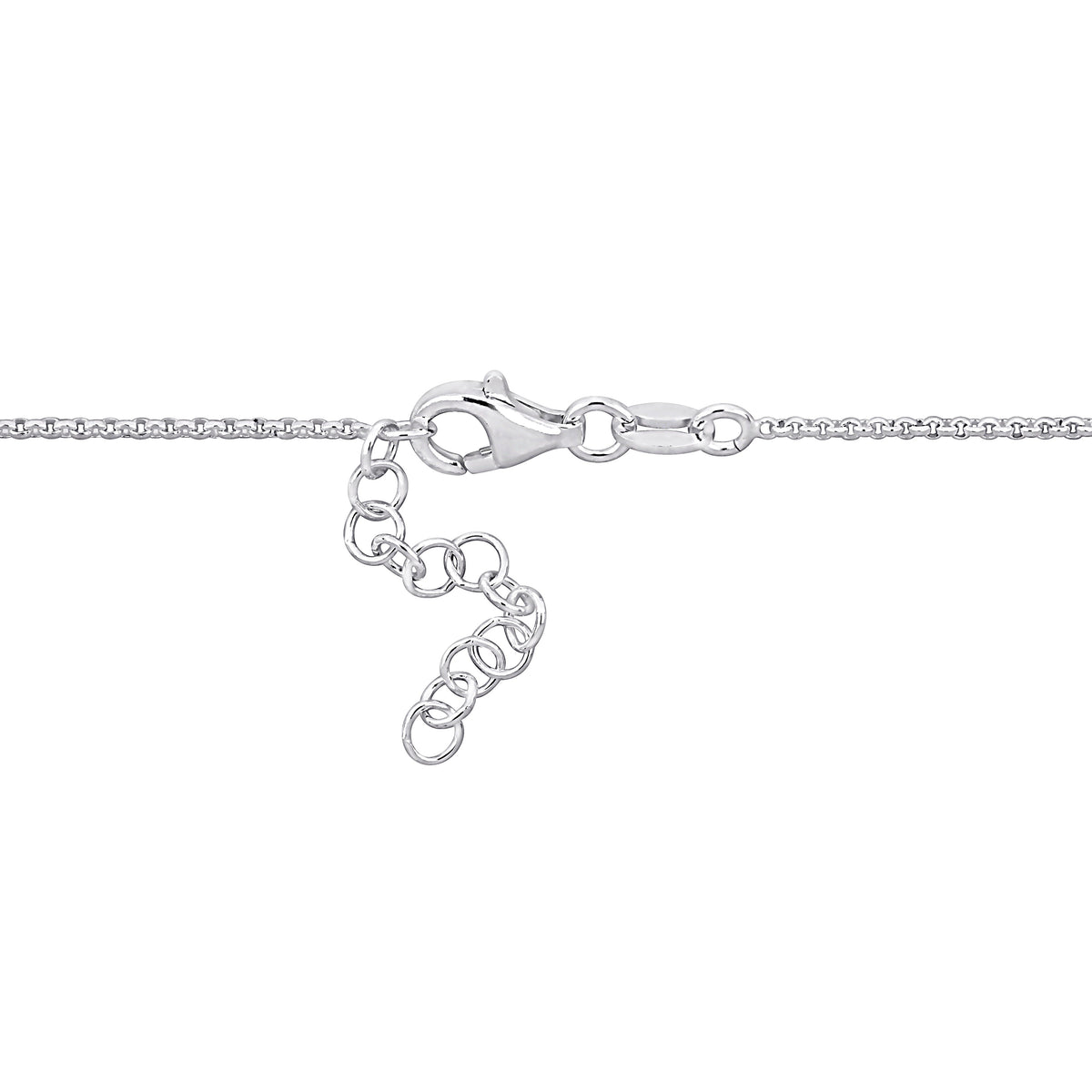 Crafted in sterling silver, this necklace features a heart-shaped pink pendant and a diamond-cut rolo chain. The chain measures 16.5 inches, with a 1-inch extender. Pendant dimensions: 15mm x 15mm.