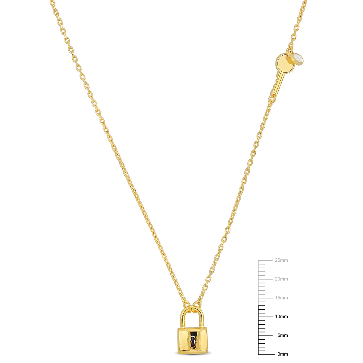 Sterling silver with white enamel accents. Pendant with lock and key motif. 16-inch chain with a 2-inch extender. Spring-ring clasp.