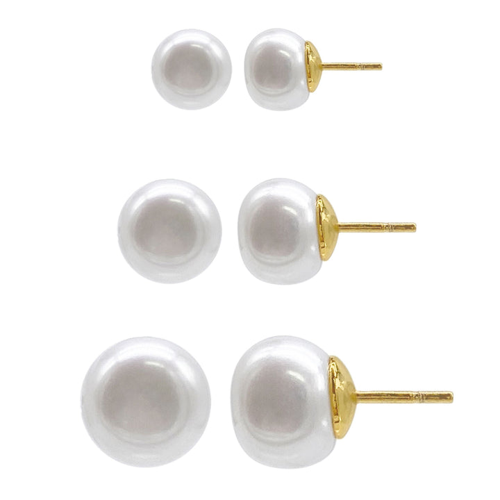14k yellow gold-plated brass, freshwater pearls (5mm, 8mm, 10mm), post backs (pierced ears required).
