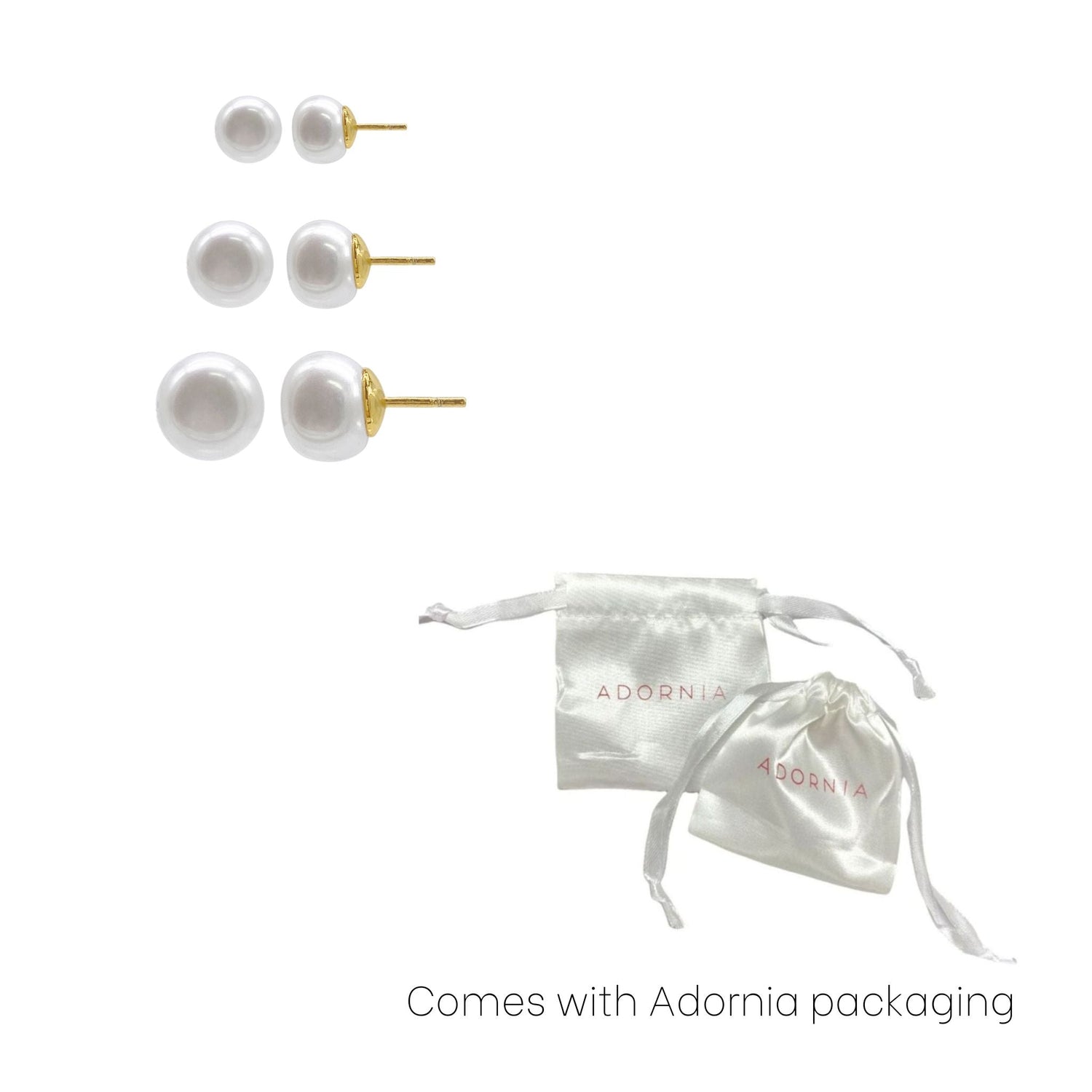 This Adornia Freshwater Pearl Stud Set Gold by Adornia offers a luxurious yet trendy approach to your everyday jewelry collection. Featuring three sizes of beautiful freshwater pearls—5mm, 8mm, and 10mm—each set is plated in 14k yellow gold for a polished finish. These stud earrings are perfect for layering or wearing individually, making them a versatile and elegant addition to your jewelry box.