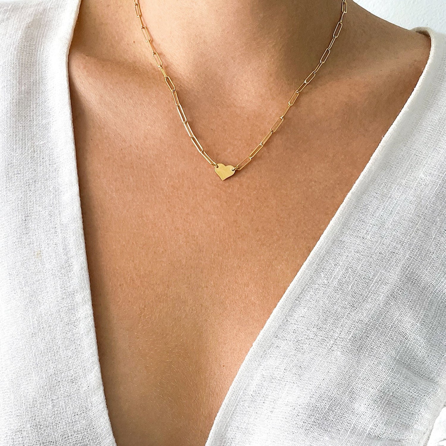 Adornia Heart Necklace with Paperclip Chain