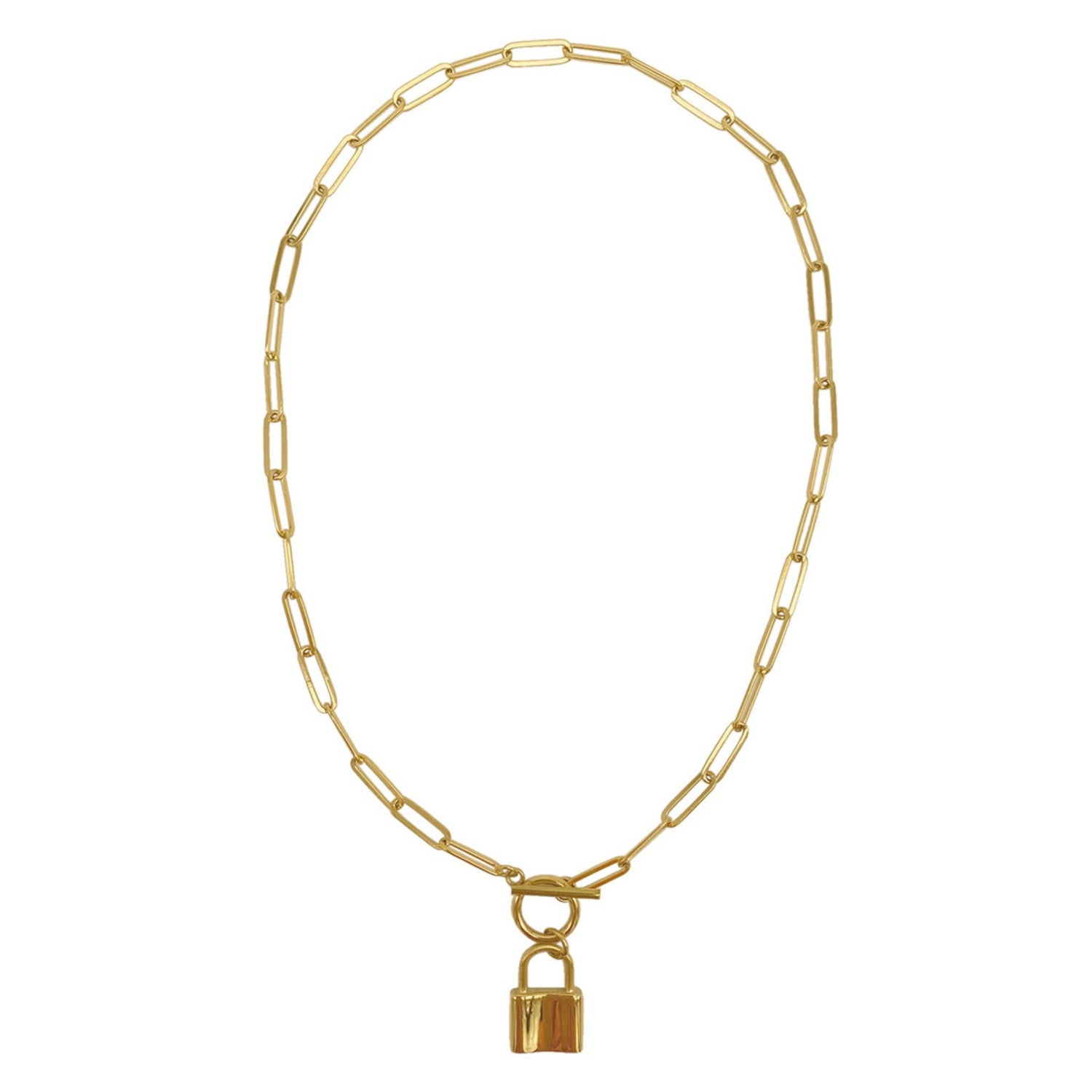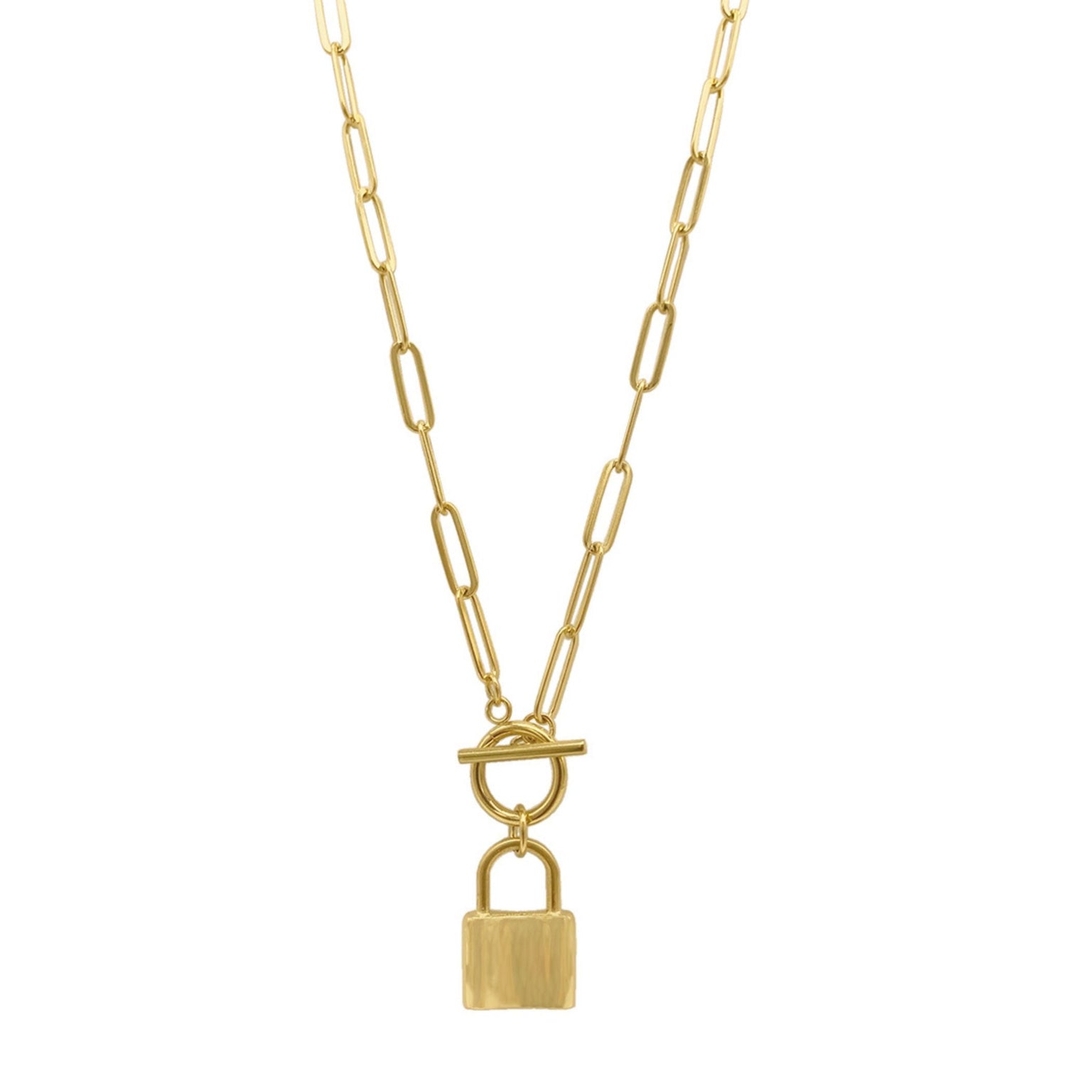 Adornia Water Resistant Lock Paper Clip Chain Toggle Necklace gold