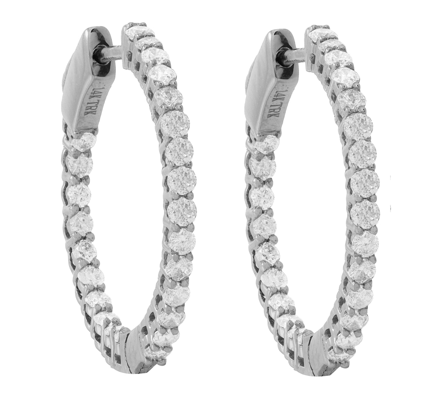 These 1.00 Carat Diamond Earrings by Diana M are a pair of elegant and timeless diamond hoop earrings. Set in 14K white gold, these earrings feature 1.00 carat total weight of round brilliant-cut diamonds, offering a stunning sparkle. Perfect for any occasion, they add a refined touch of luxury to your jewelry collection. These hoop earrings are a must-have for anyone who appreciates classic, sophisticated style.