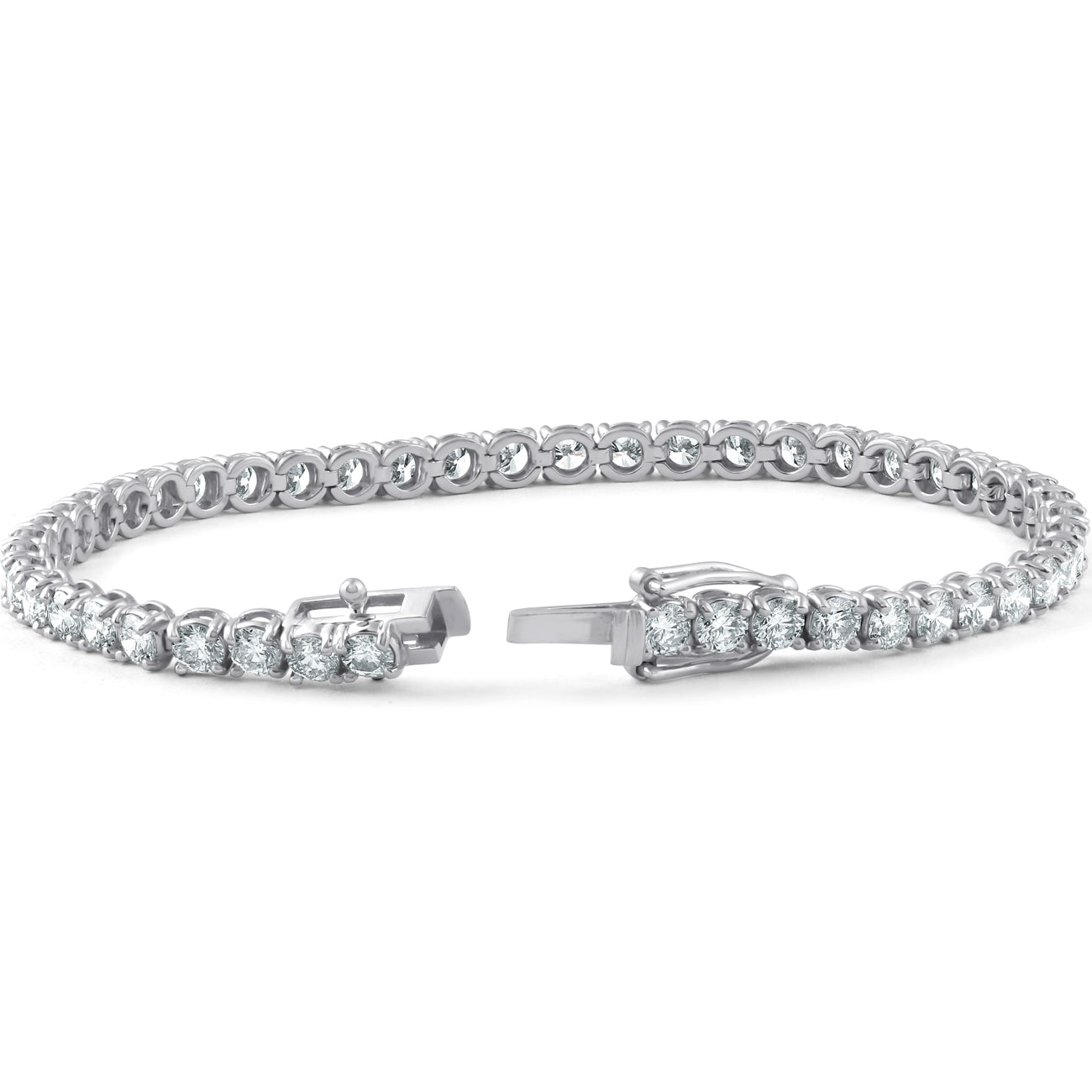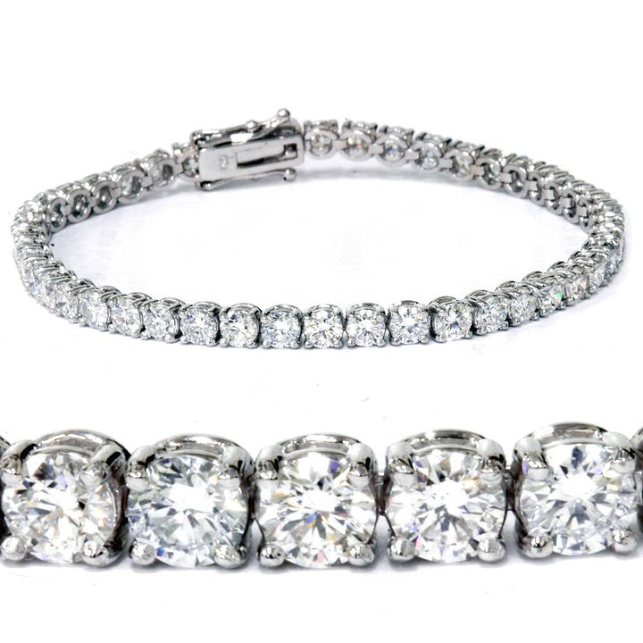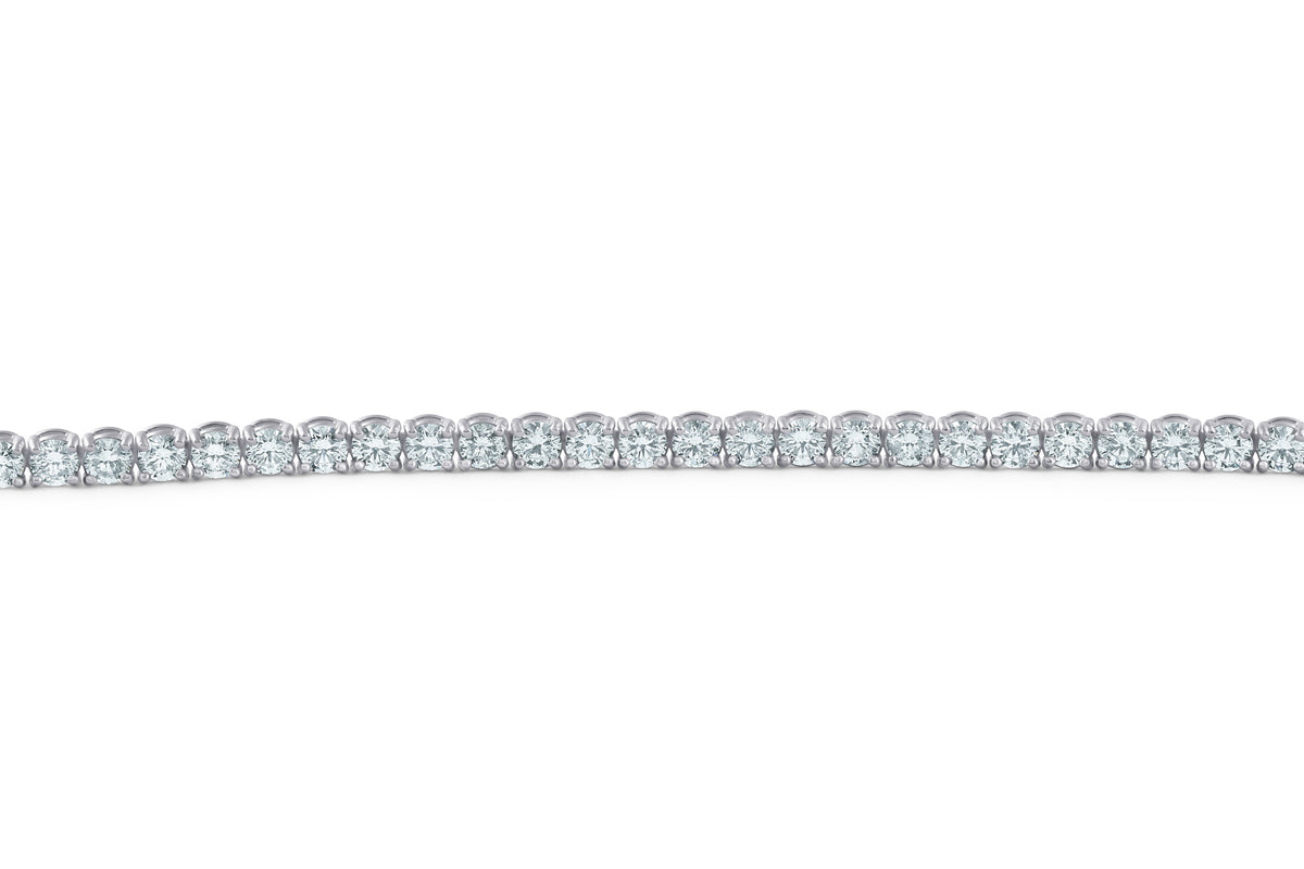 18K white gold with 7 carats total weight of round cut lab-grown diamonds (G-H color, VS clarity). 7-inch bracelet with double lock clasp.