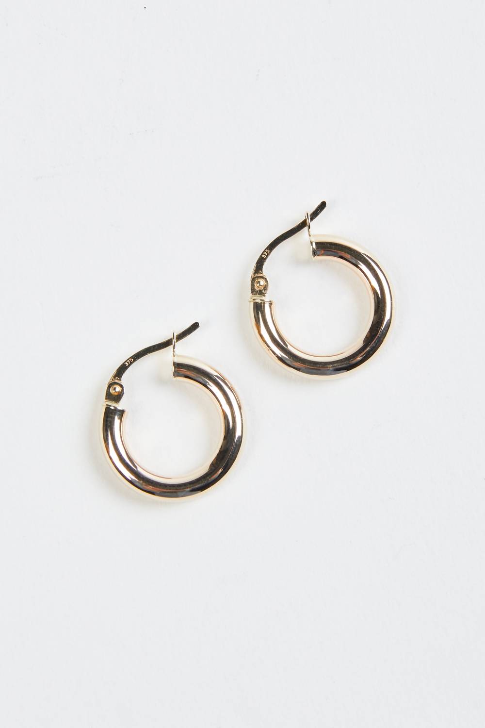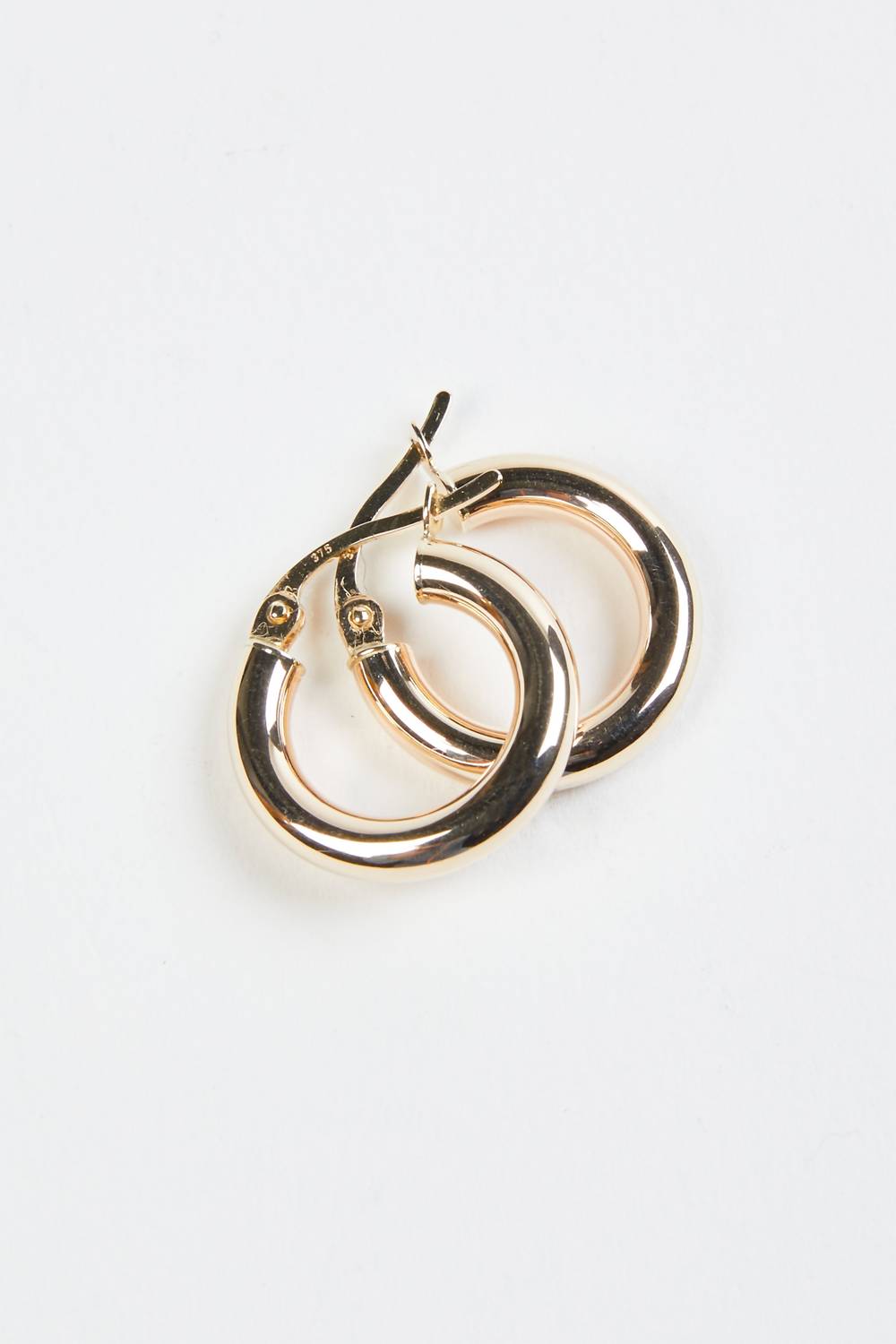 Handcrafted in 9K gold with hollow hoop design. Diameter: 10mm.