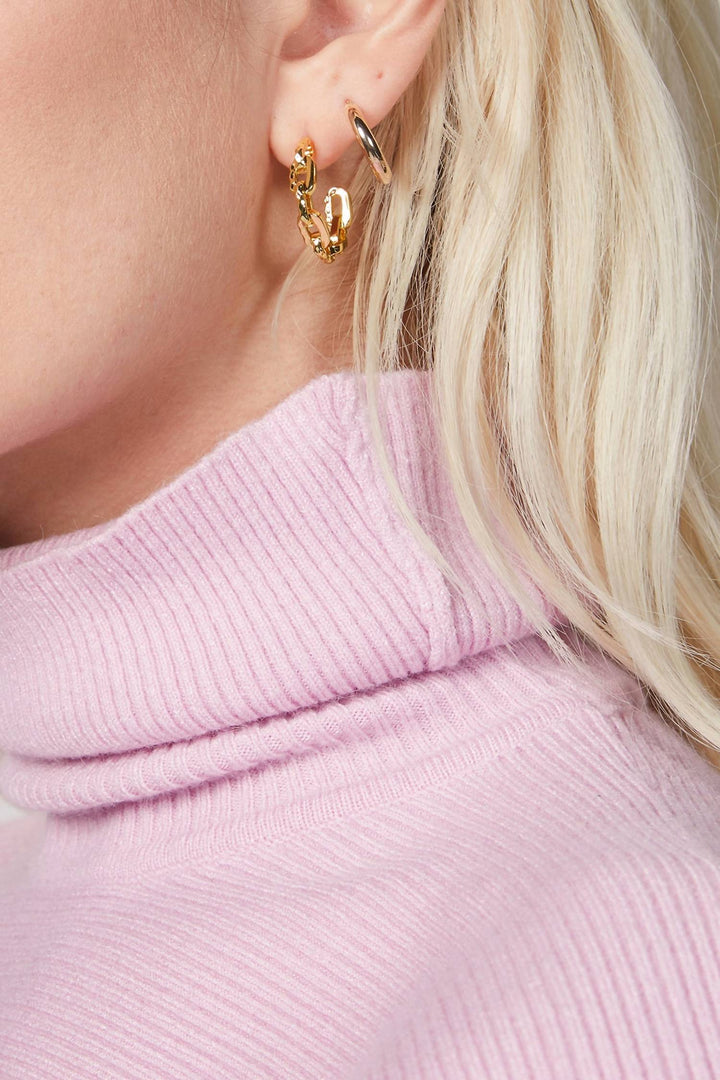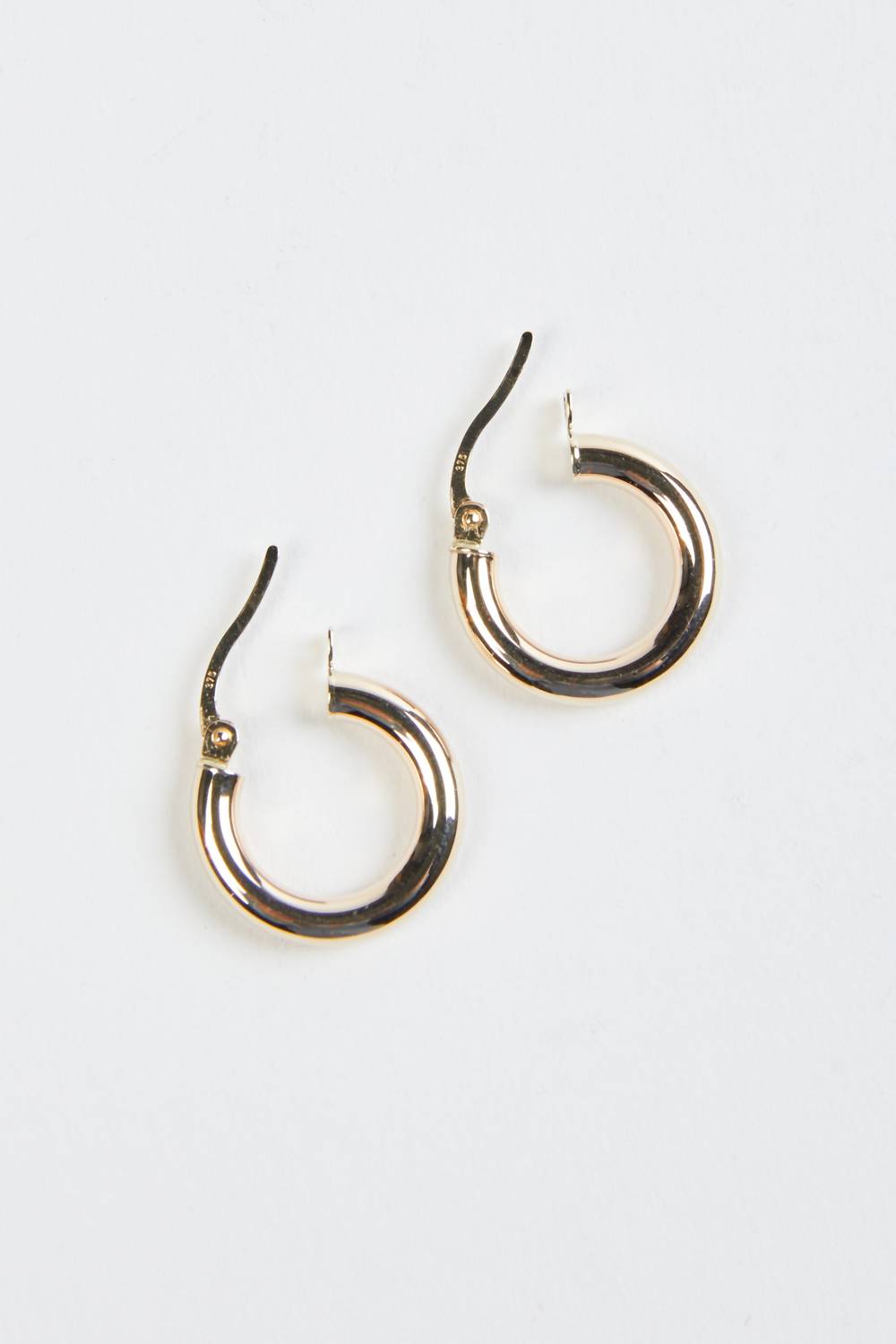 These Bianca Hoops in Gold by Vermeer Studio are a stunning accessory for any occasion. The 10mm diameter hollow hoops are handcrafted in Australia, creating a unique and refined look. These hoops are perfect for adding a touch of elegance to your daily ensemble. Layer them with other earrings, such as the Rainbow Huggie, to complete a chic, stylish look.