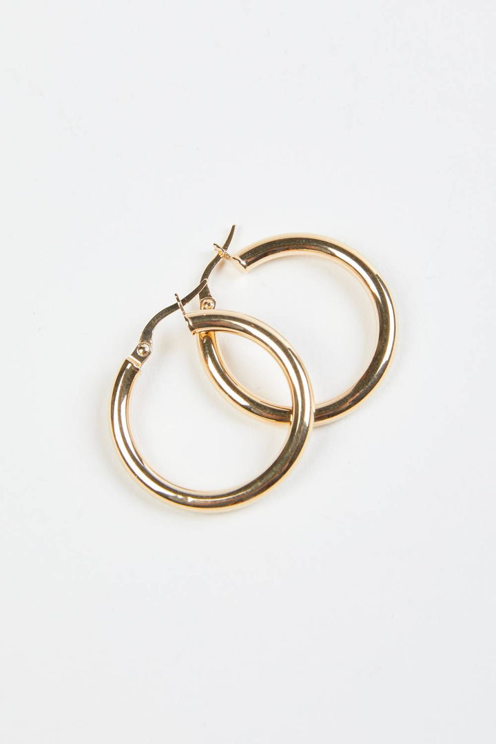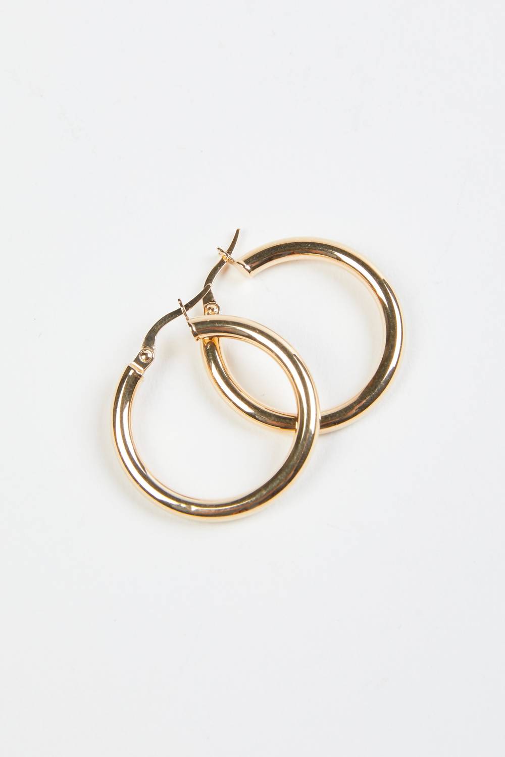Handcrafted in 9k gold with a hollow hoop design. Diameter: 20mm. Made in Australia.
