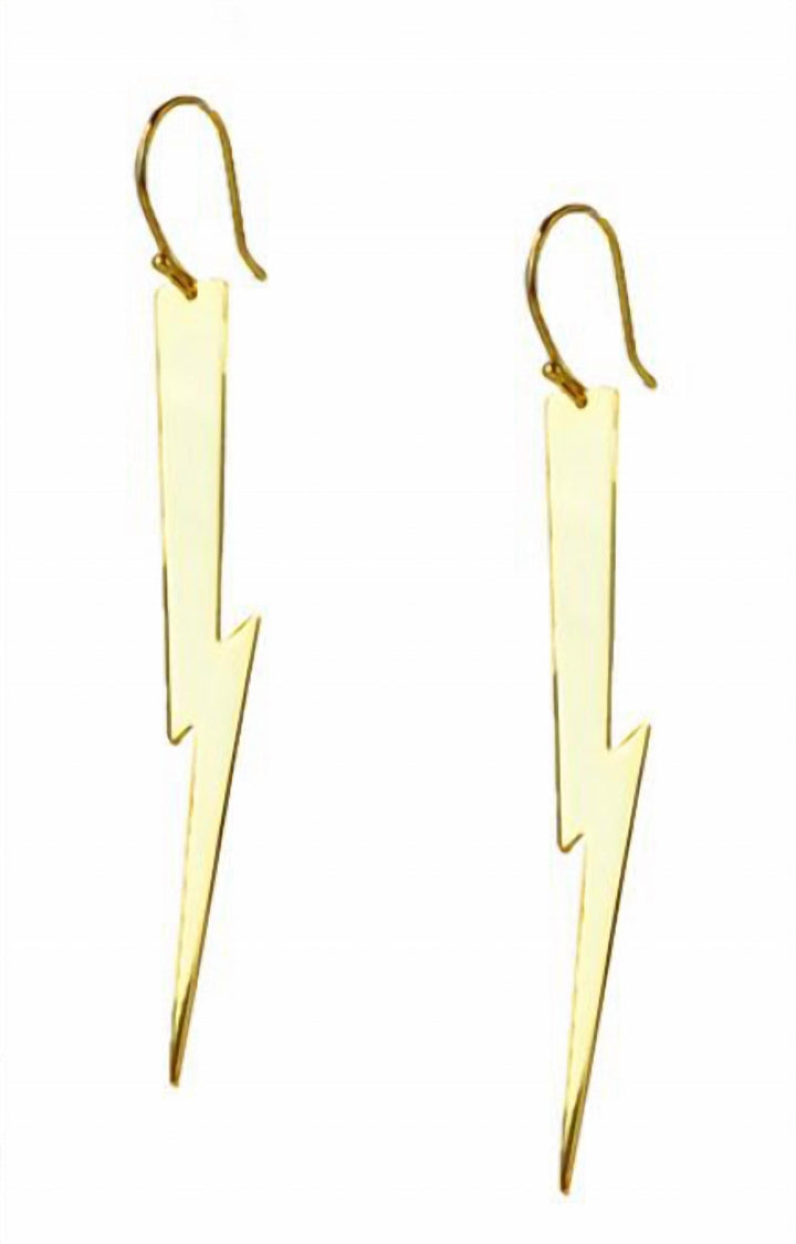 Made from sterling silver or gold fill with a large lightning bolt design. Fish hook closure for secure wear.