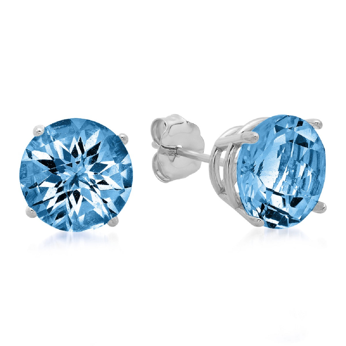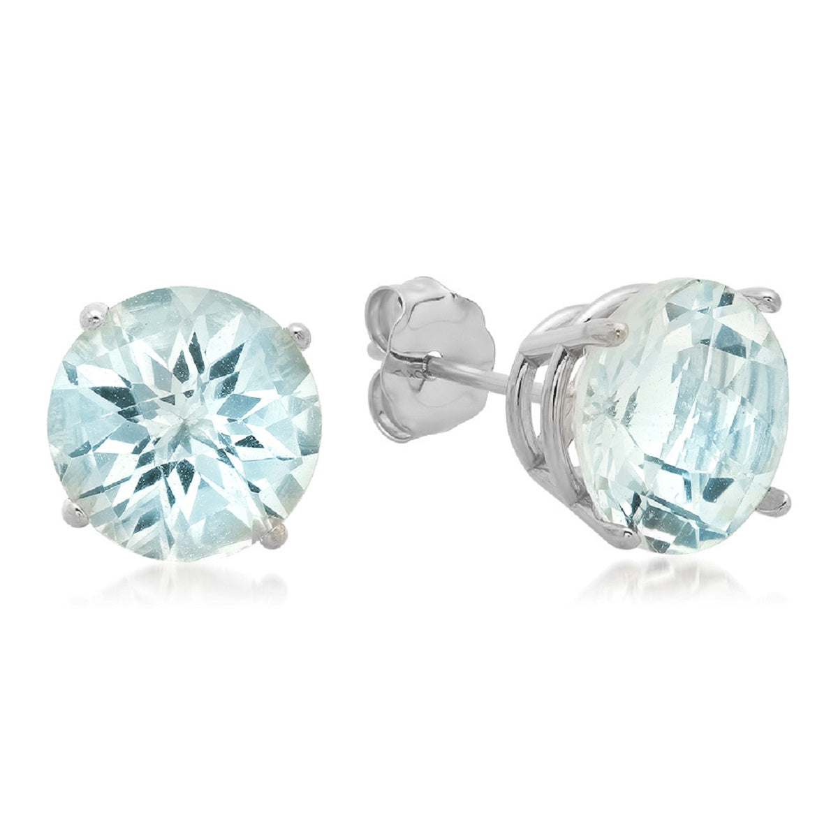 Made from 10k white gold with 8mm round checkerboard cut aquamarine stones.