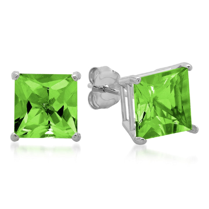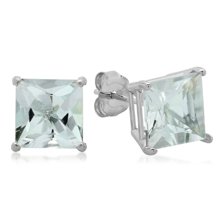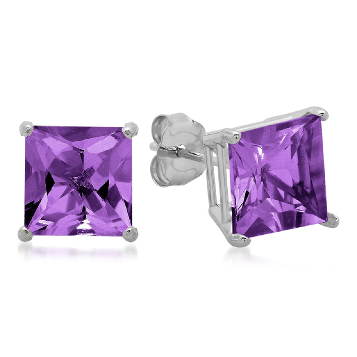 These 10K White Gold 7MM Princess Cut Amethyst Stud Earrings by MaxColor feature rich, deep purple amethyst stones set in radiant 10K white gold. The princess cut enhances the gemstone's natural brilliance, making these earrings a striking addition to any jewelry collection. These stud earrings are ideal for those who love vibrant color and timeless elegance.