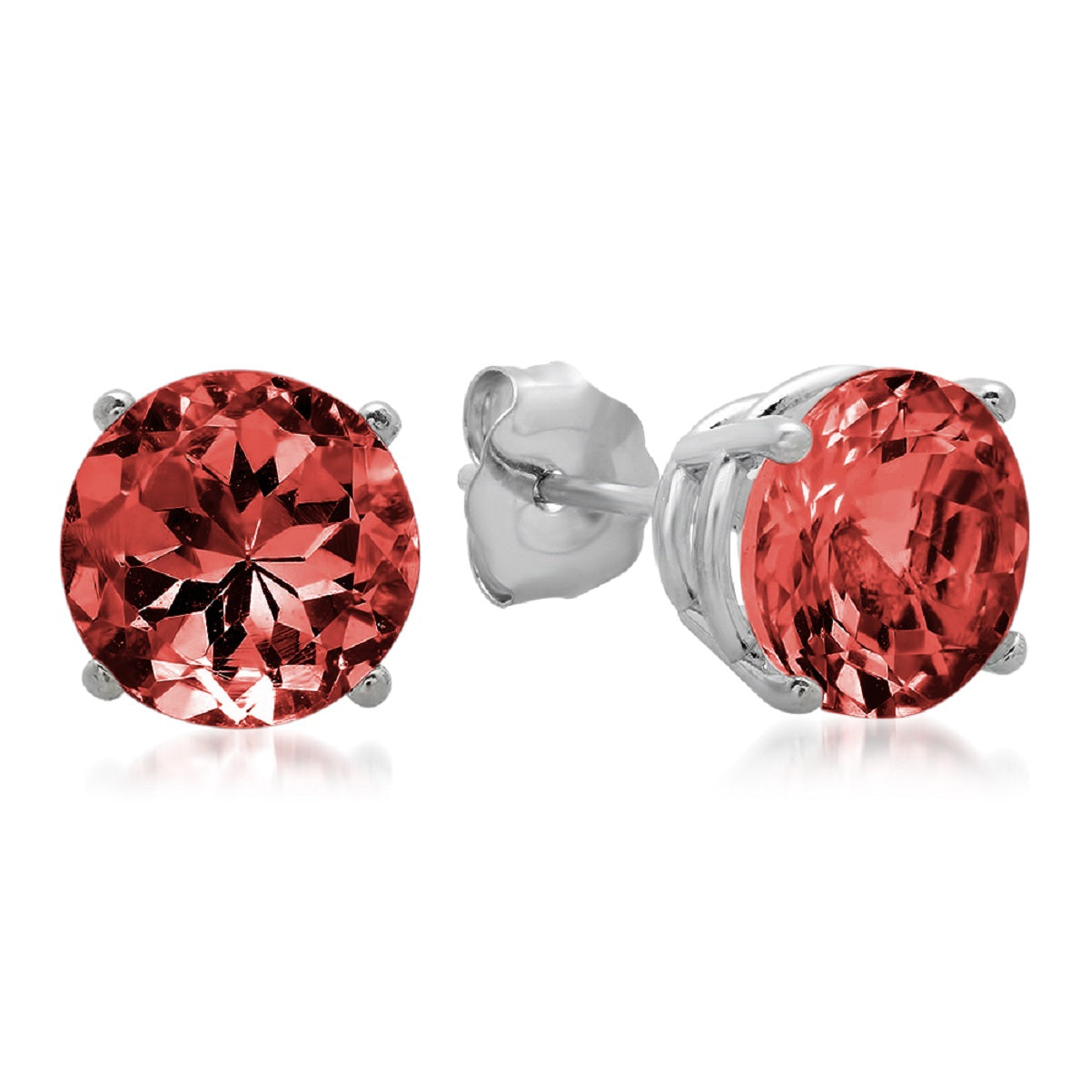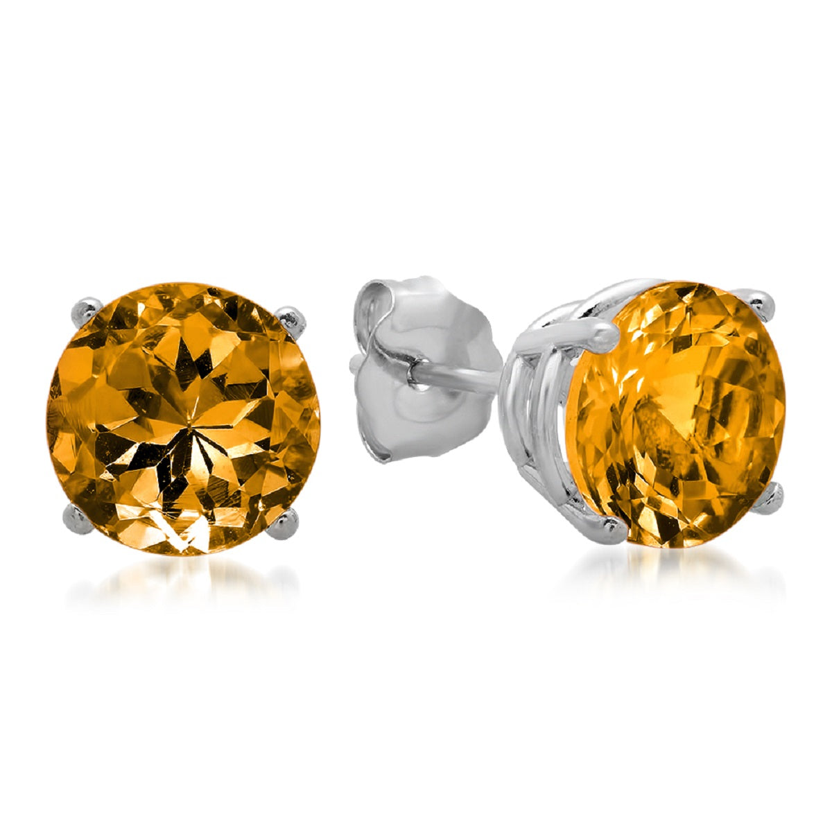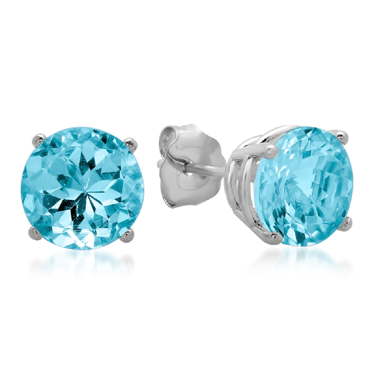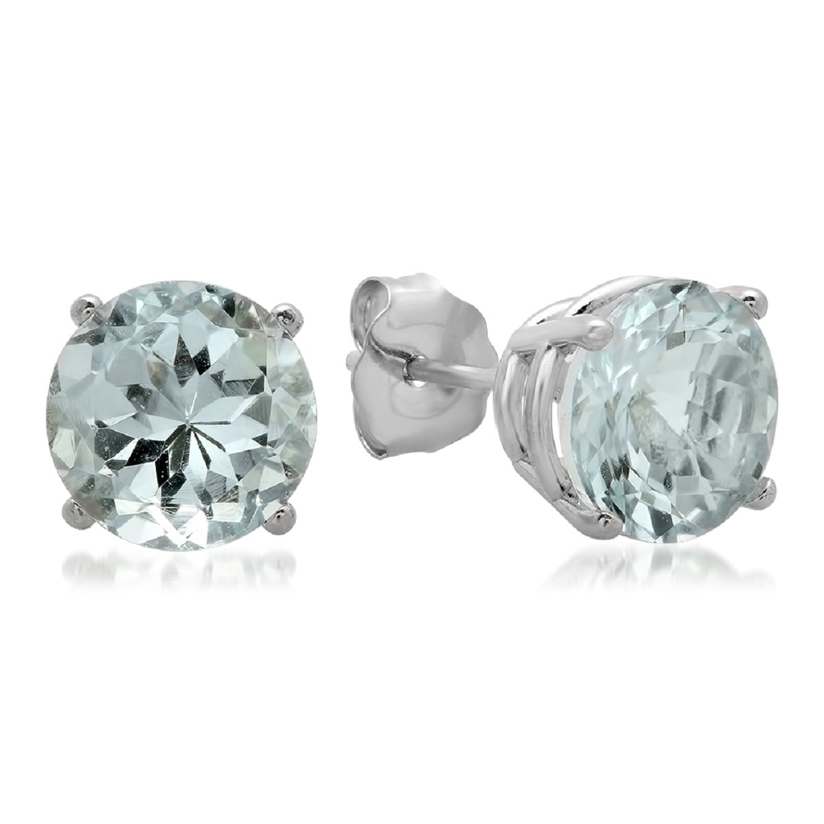 10K White Gold 7MM Round Cut Aquamarine Stud Earrings