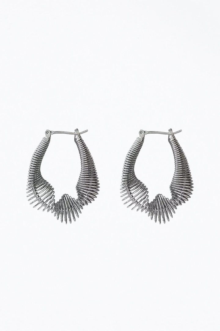 These Metropolis Twisted Hoop Earrings in Silver by VIDEMUSOMNIA are a modern twist on the classic hoop design. Handmade in New York, these earrings are crafted from twisted silver-plated metal, offering a sculptural look that adds depth and texture to any outfit. With their 1-inch size, they are perfect for both day and night wear, elevating any look with their elegant simplicity.