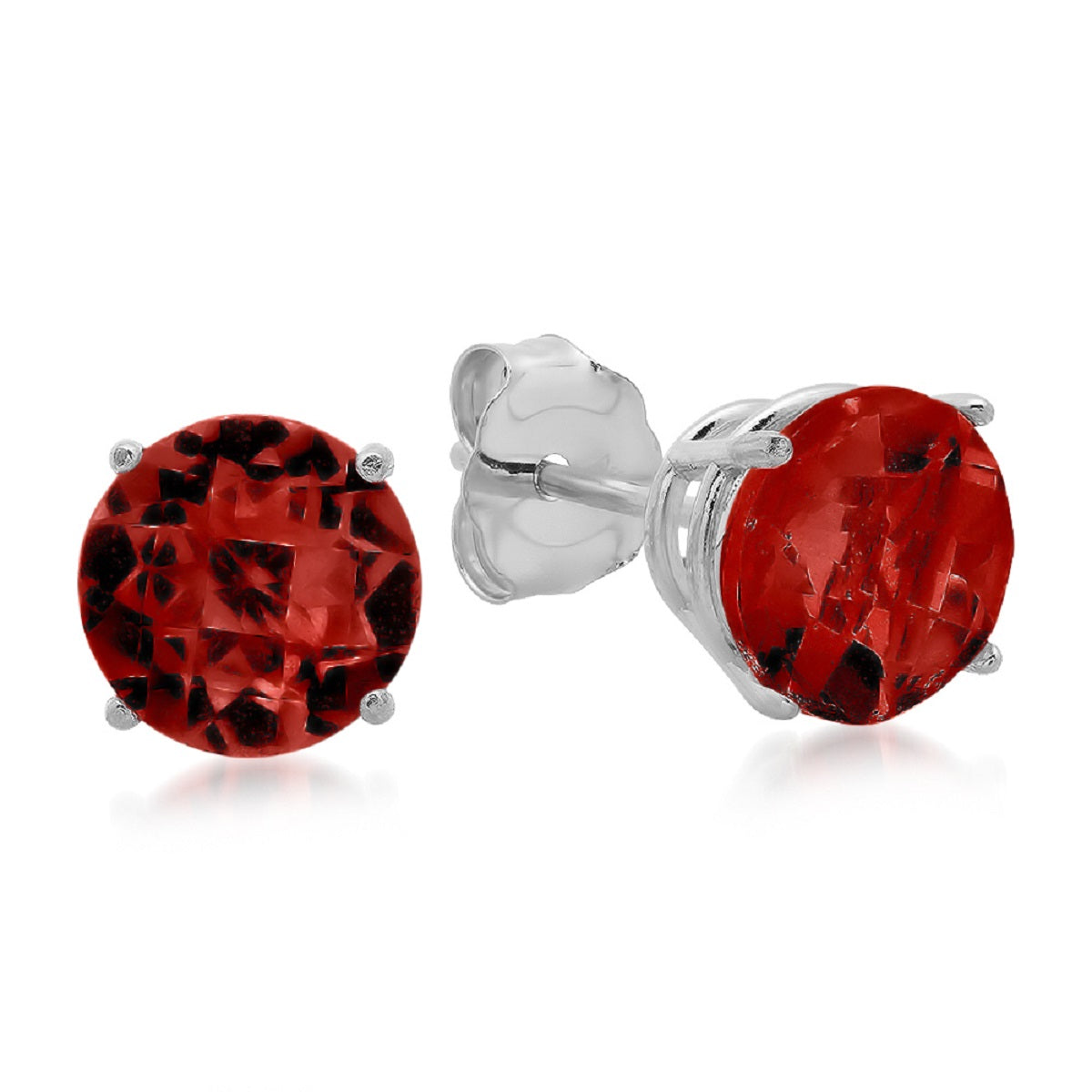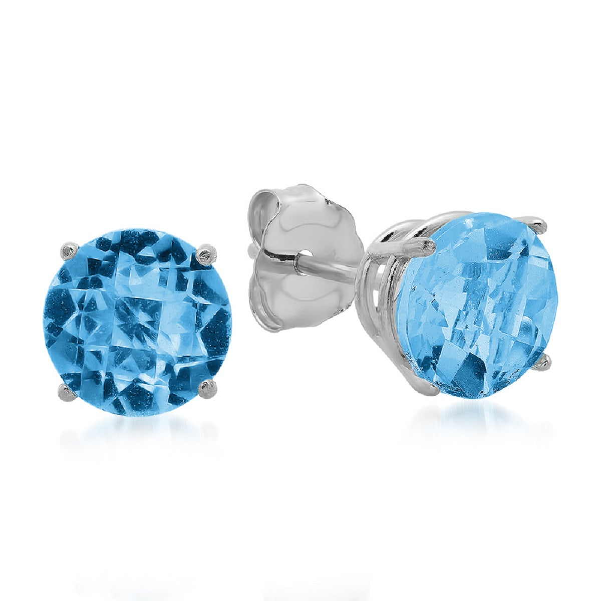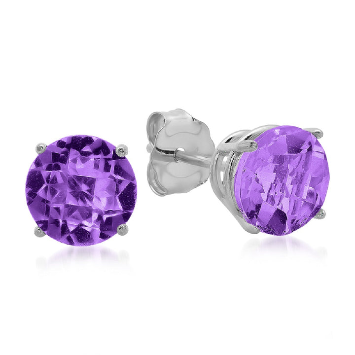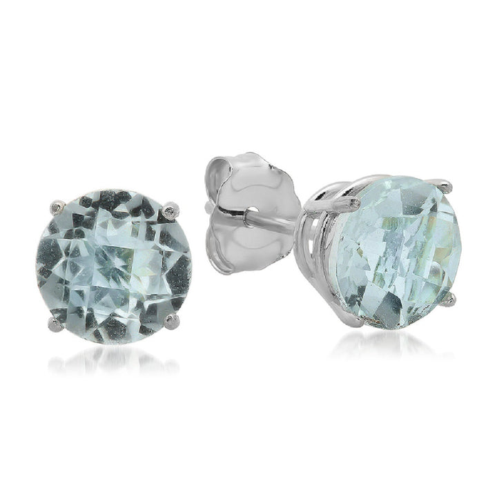 These 10K White Gold 6MM Round Stud Earrings by MaxColor feature checkerboard-cut peridot stones that sparkle with vibrant green hues. The 6mm stones are set in 10K white gold, offering a contemporary design that complements both casual and formal outfits. These classic stud earrings are perfect for those who appreciate timeless elegance.
