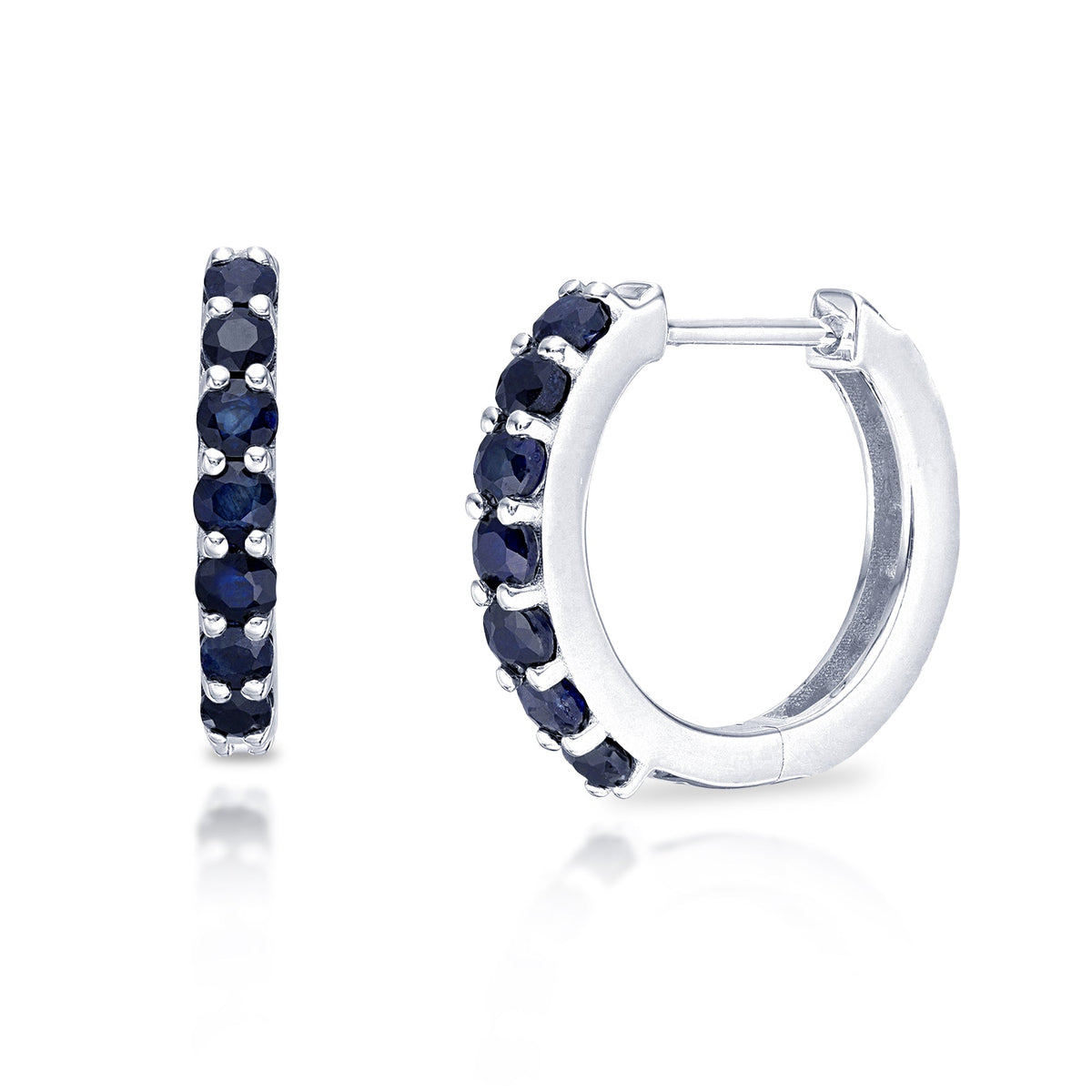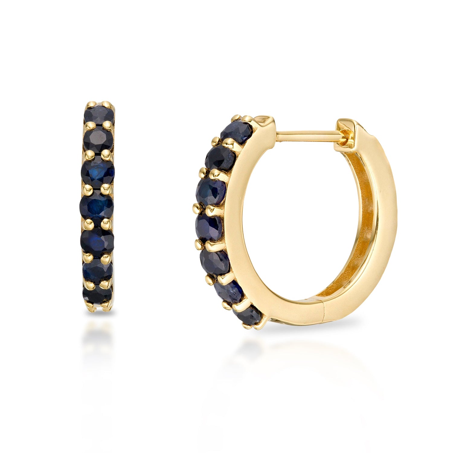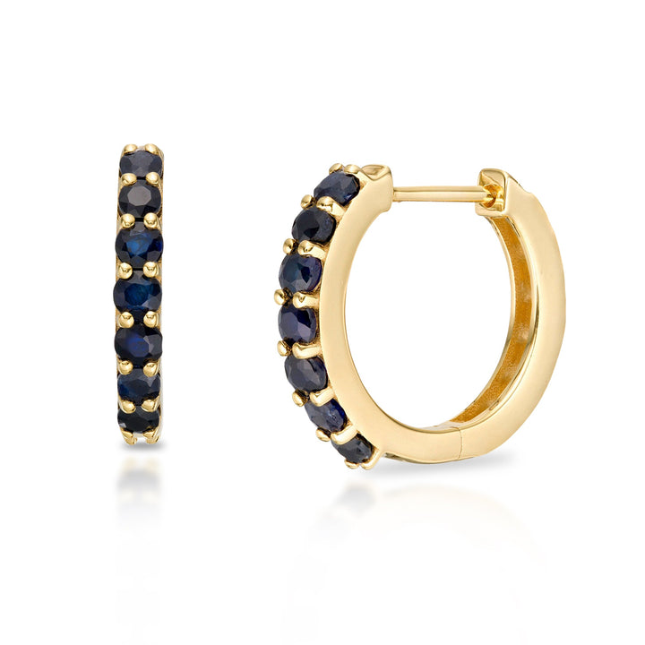 Made from solid 10K yellow or white gold. Featuring 14 gemstones in the design. Lightweight and hypoallergenic. Hinged post closure for easy wear.