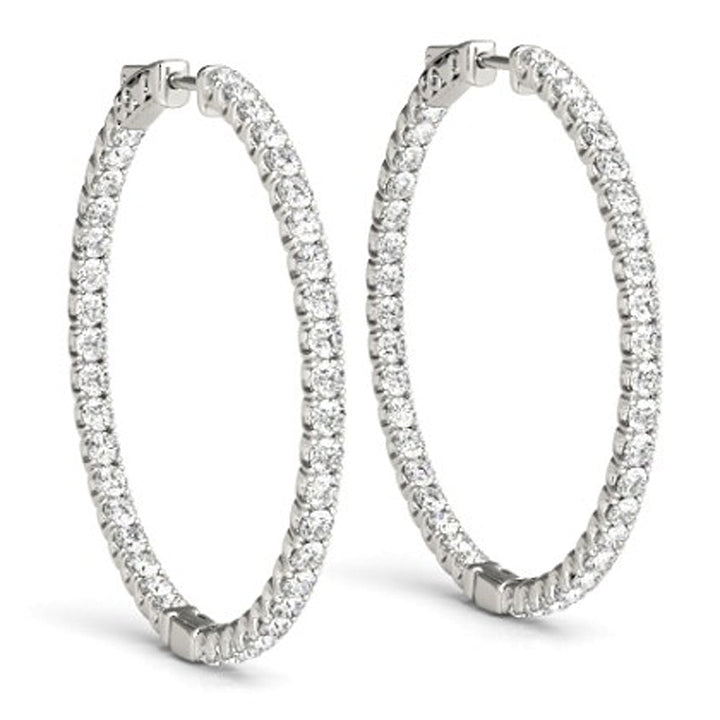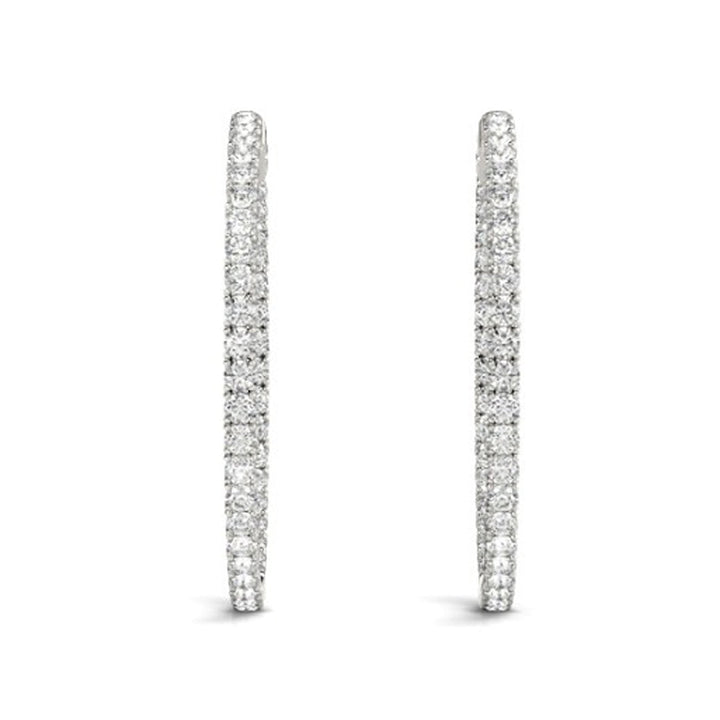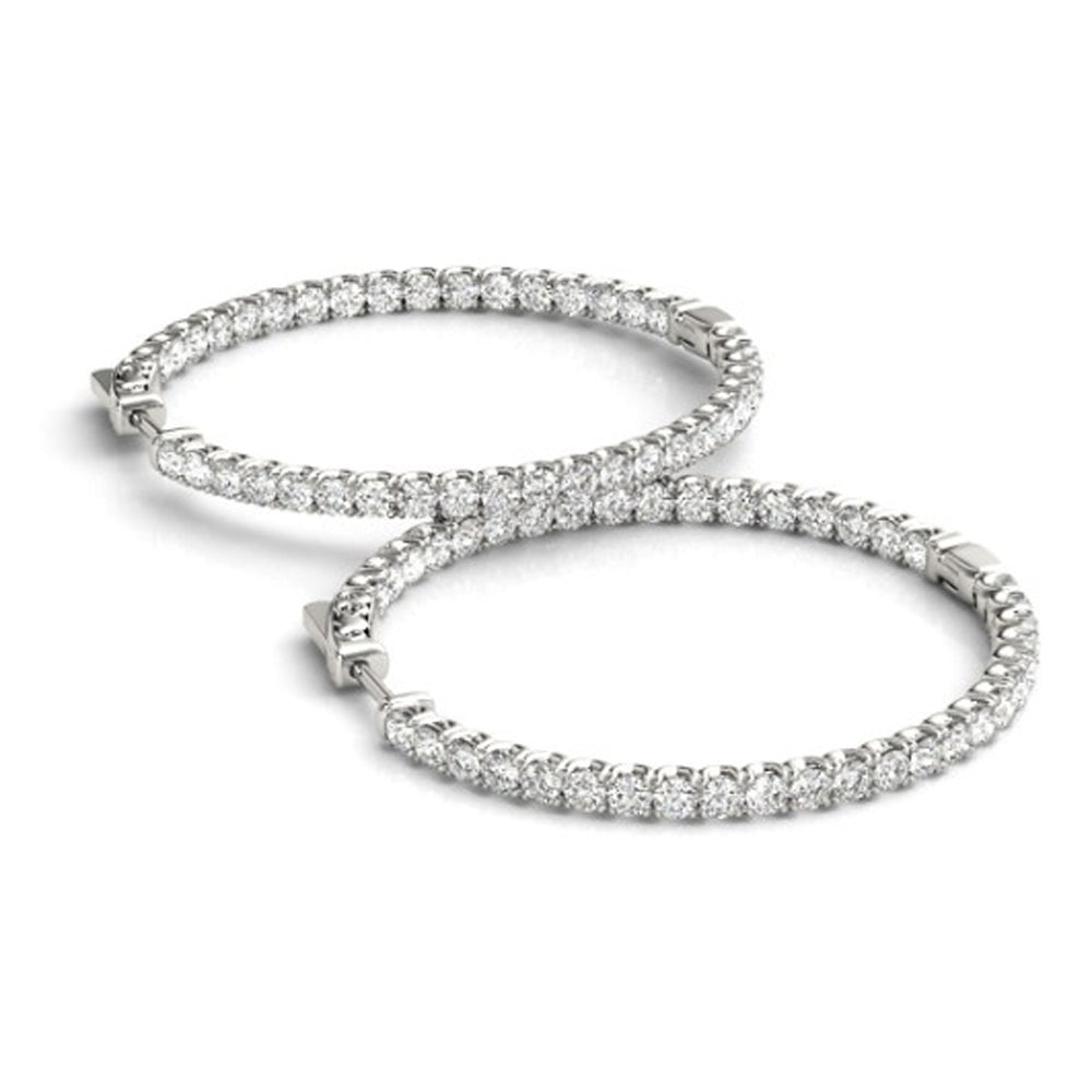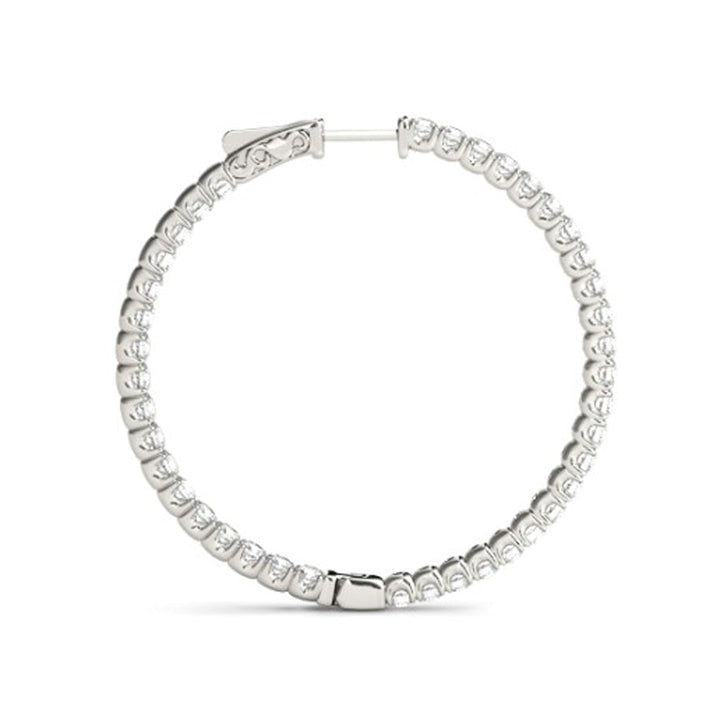 1.75 ct Lab Grown Diamond Hoops Inside Outside 1 1/3' 14K White Gold Vault Lock