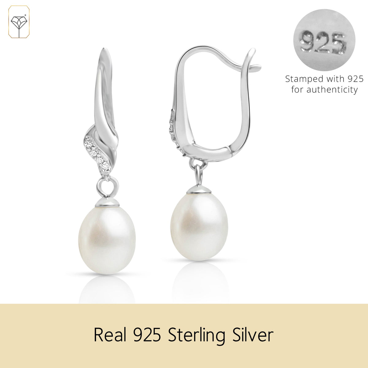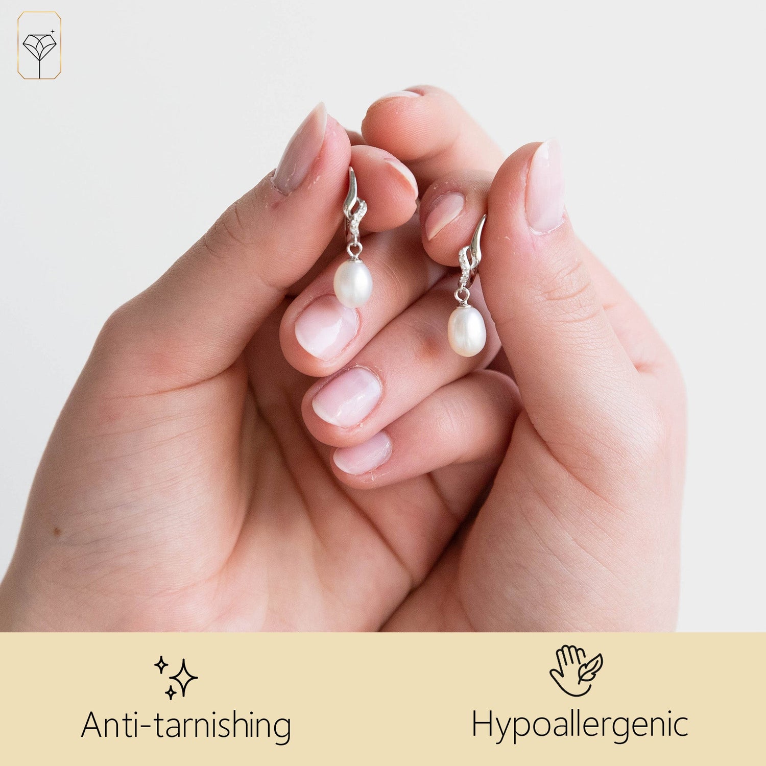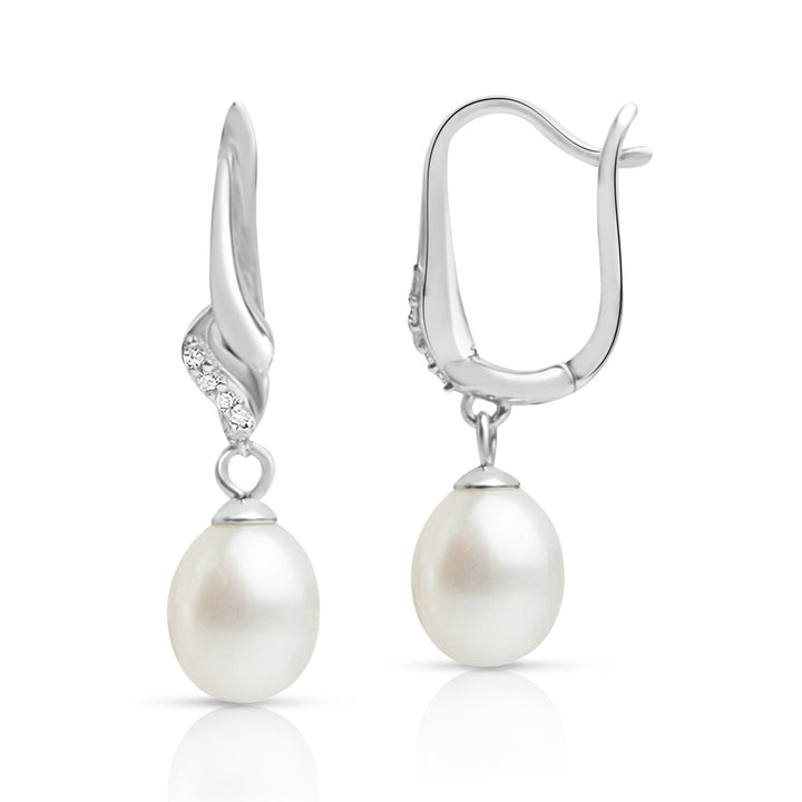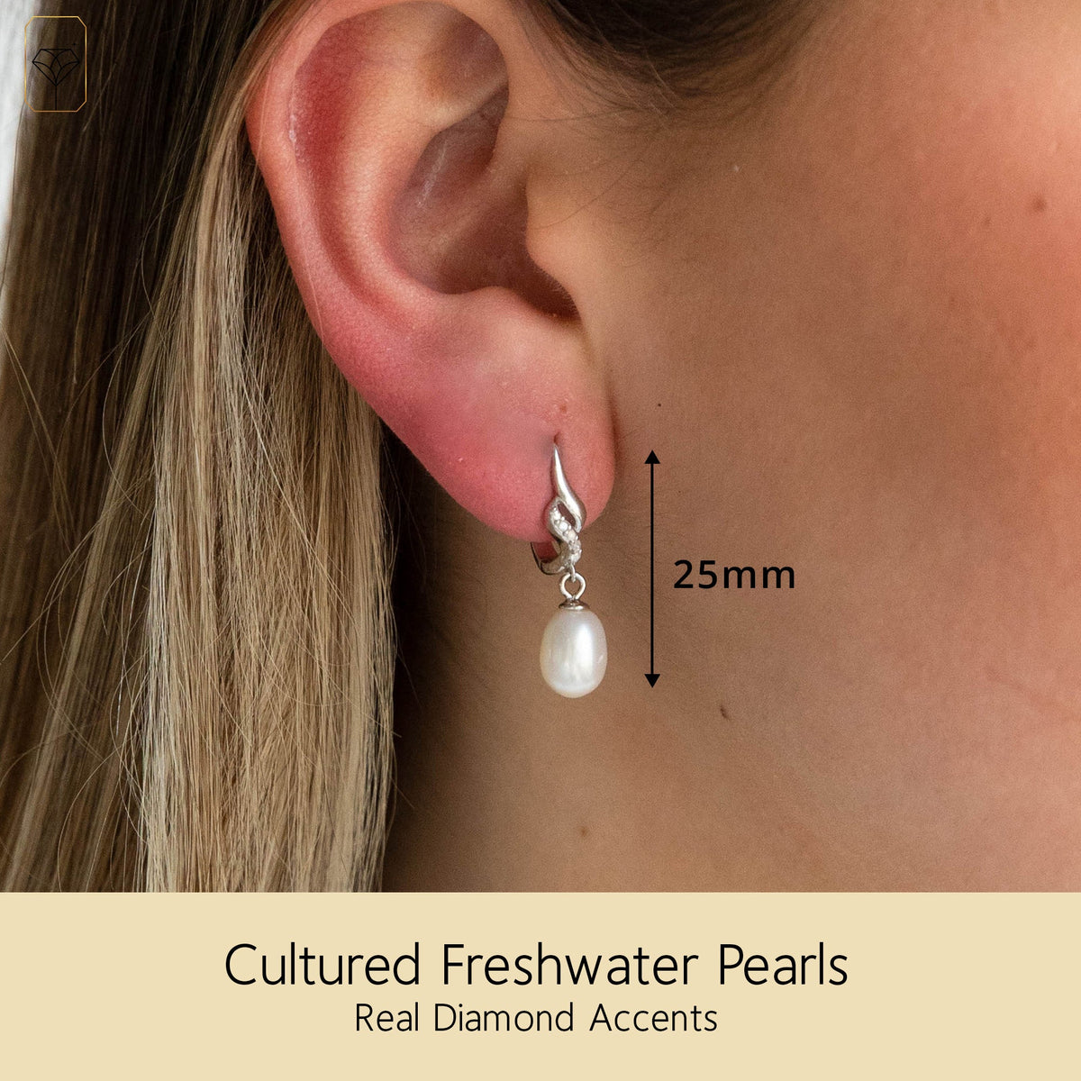 Freshwater Pearl & Natural Diamond Mermaid Tears Earrings in Sterling Silver