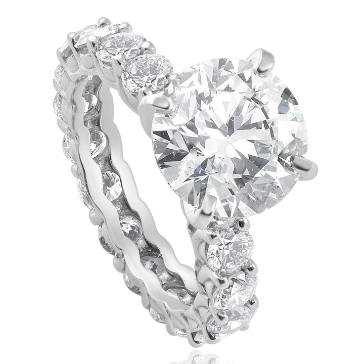 This Certified 7.02 Ct Diamond Eternity Engagement Ring by Pompeii3 is a breathtaking statement of everlasting love. Featuring a stunning 4.02 ct round-cut lab-grown diamond at its center, accented by a row of diamonds that encircle the entire band, this ring is a true showstopper.