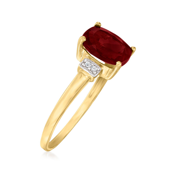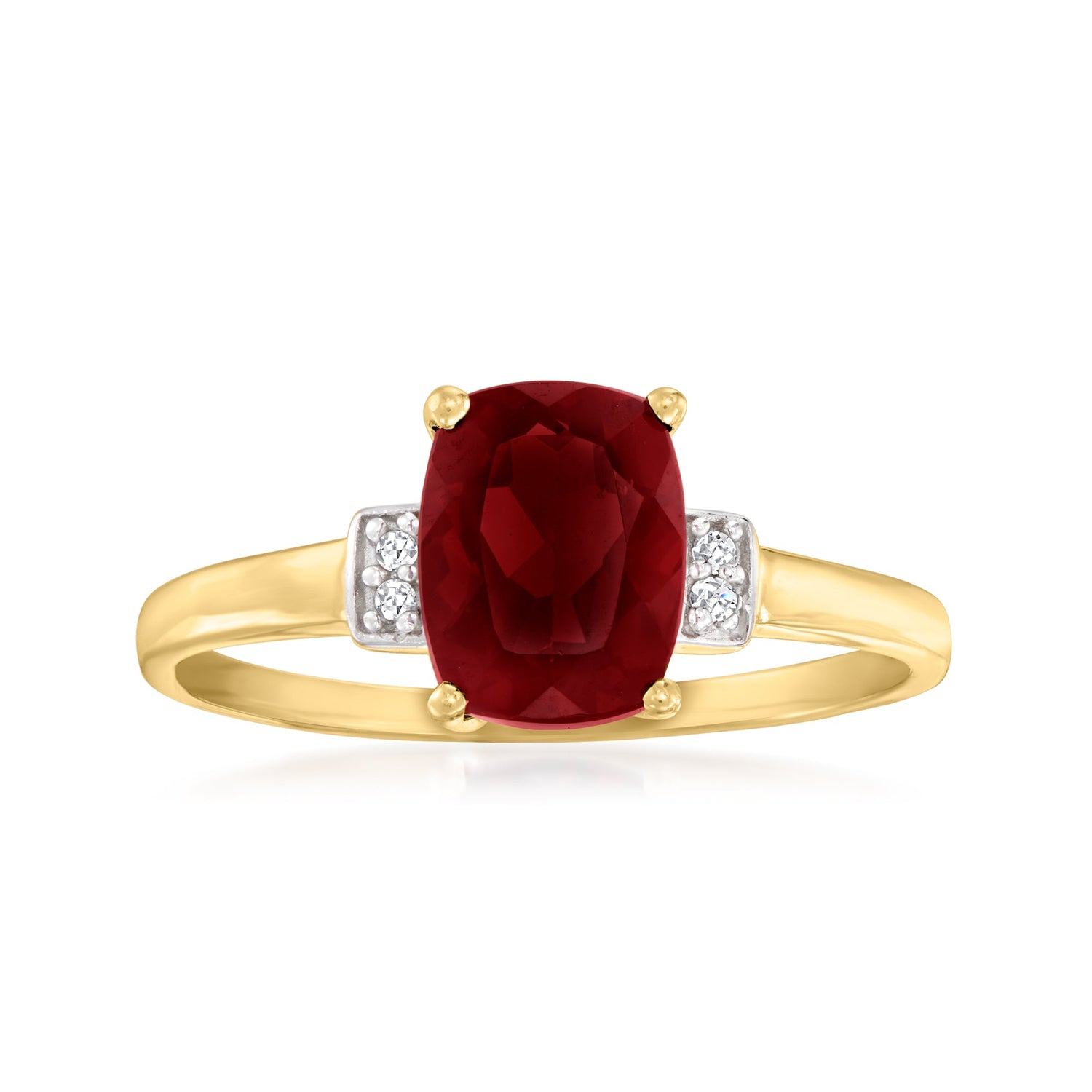 Crafted in 10kt yellow gold, featuring a 1.80 ct. rectangular cushion-cut garnet. Accented with round-cut white topaz stones for added sparkle. Polished finish.