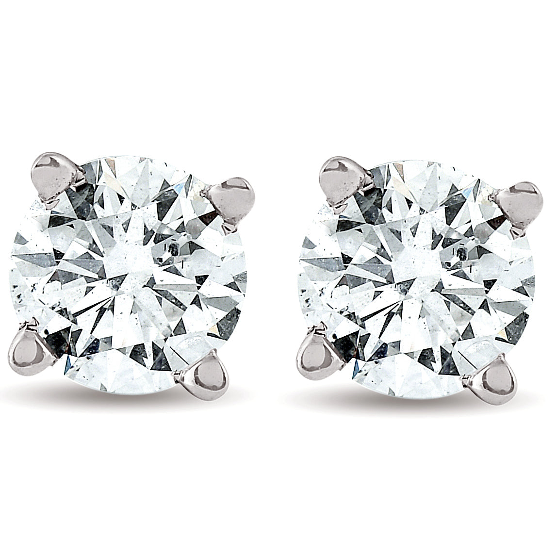 1/2 cttw total weight of round brilliant cut diamonds, set in solid 14K white gold with push back closures for a secure fit.