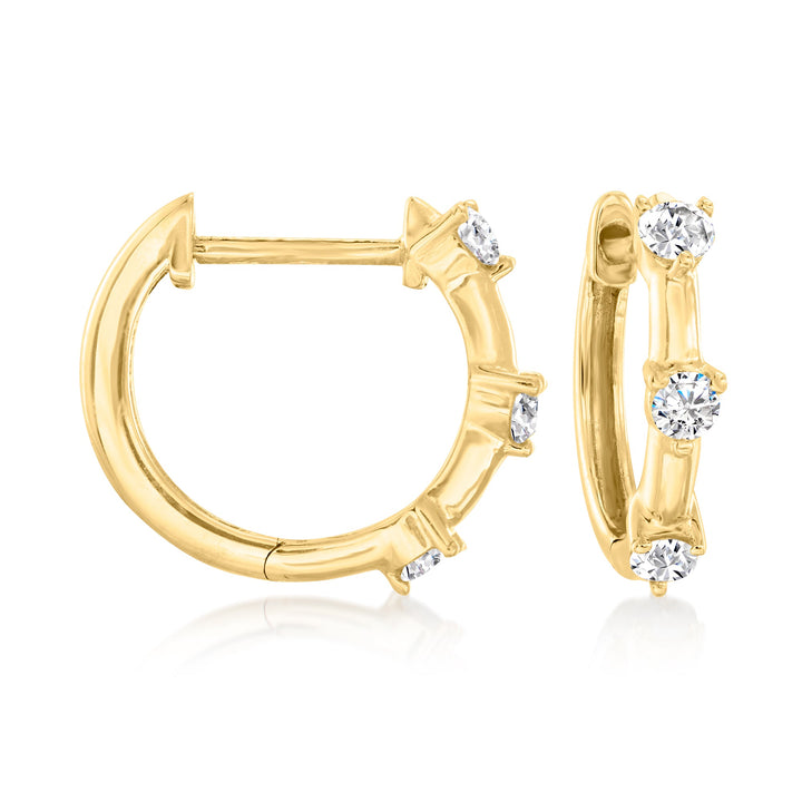 Crafted in 10kt yellow gold, featuring .25 ct. t.w. round brilliant-cut diamonds. Diamond color: I-J, clarity: I2-I3. Width: 1/16 in., Hanging length: 3/8 in.. Hinged post backings.