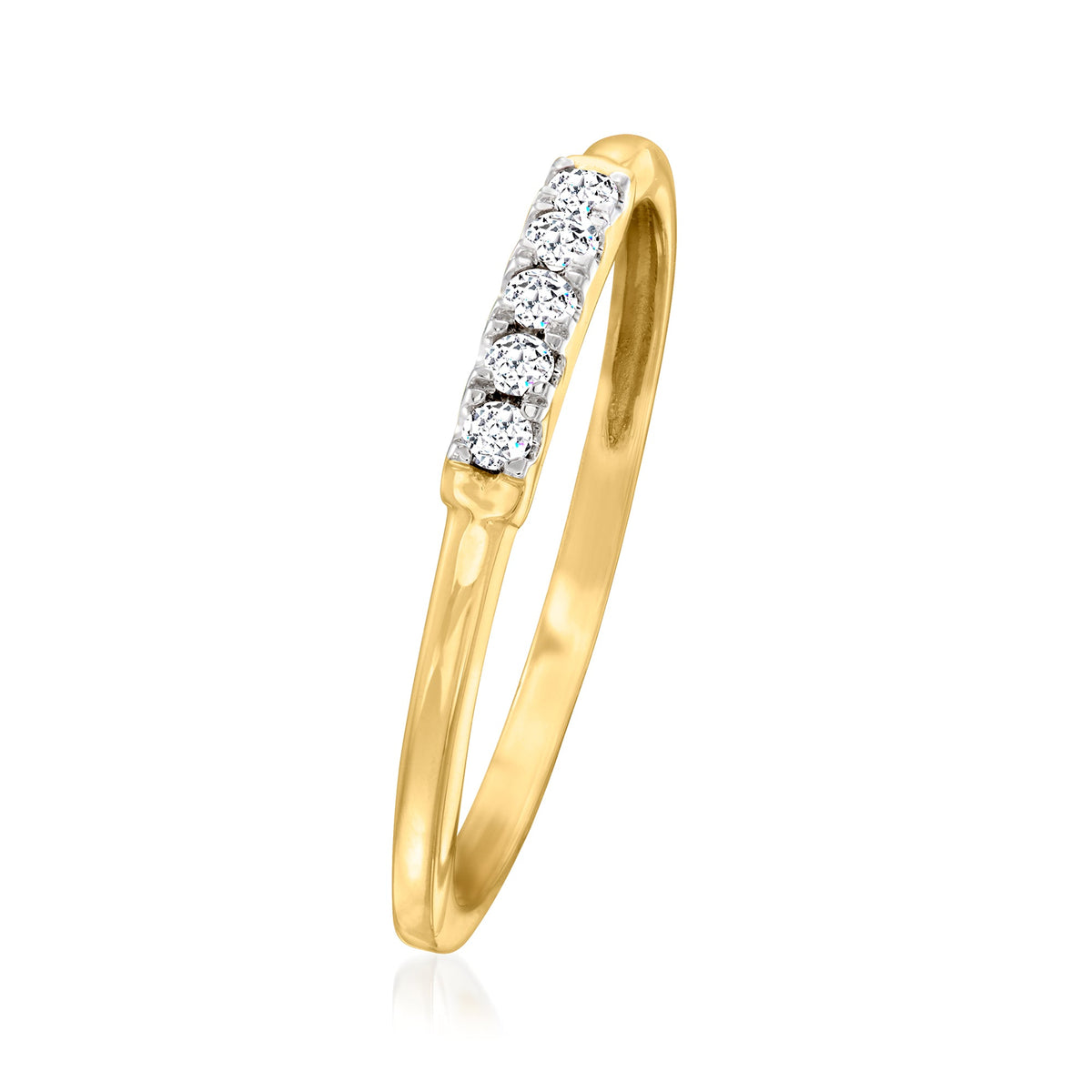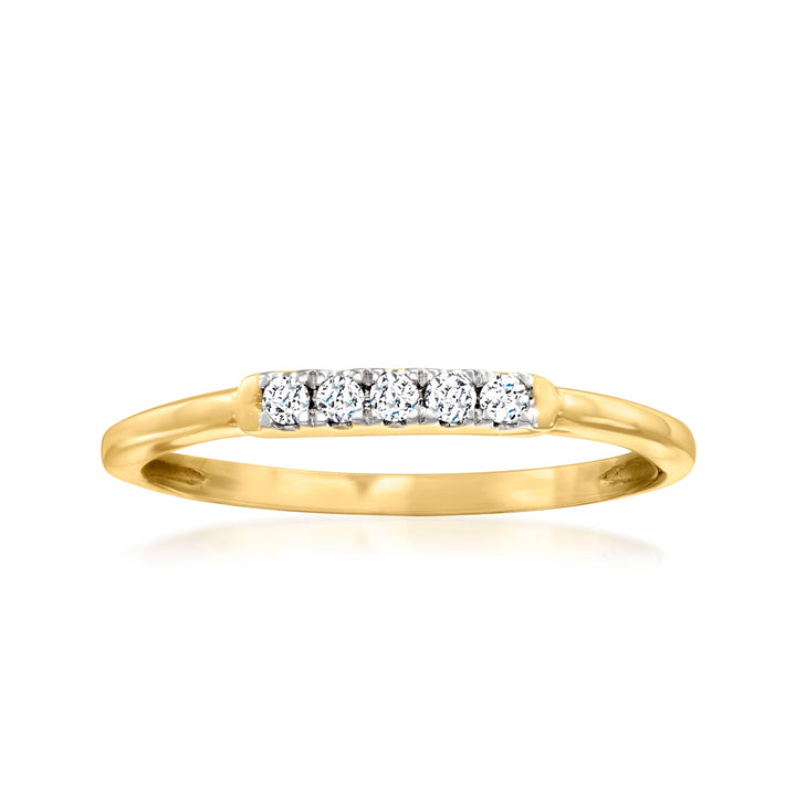 10kt yellow gold. .10 ct. t.w. round brilliant-cut natural diamonds (I-J color, I2 clarity). Five-stone setting. 1/16-inch band width.