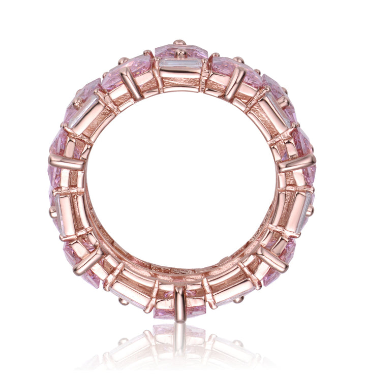 GV Sterling Silver 18k Rose Gold Plated with Pink Ice & Cubic Zirconia Chunky Double Row Eternity Band Ring