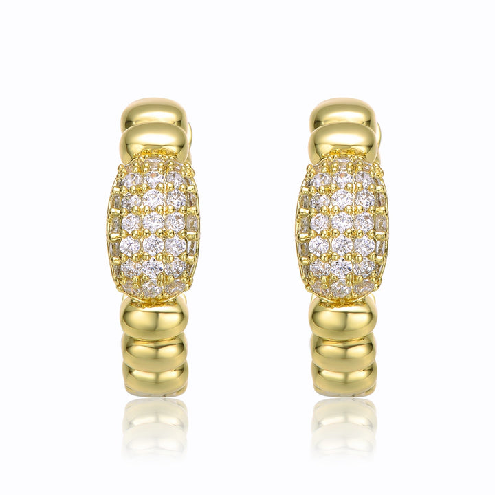 GV Sterling Silver 14k Yellow Gold Plated with Cubic Zirconia Scalloped Huggie Hoop Earrings
