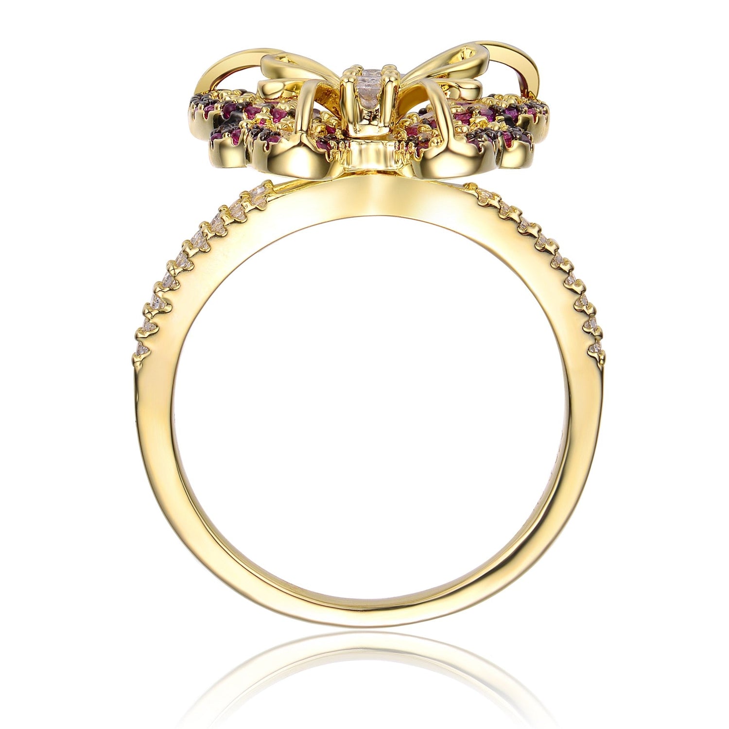 RG Young Adults/Teens 14k Yellow Gold Plated with Amethyst & Cubic Zirconia Butterfly Split Top Ring