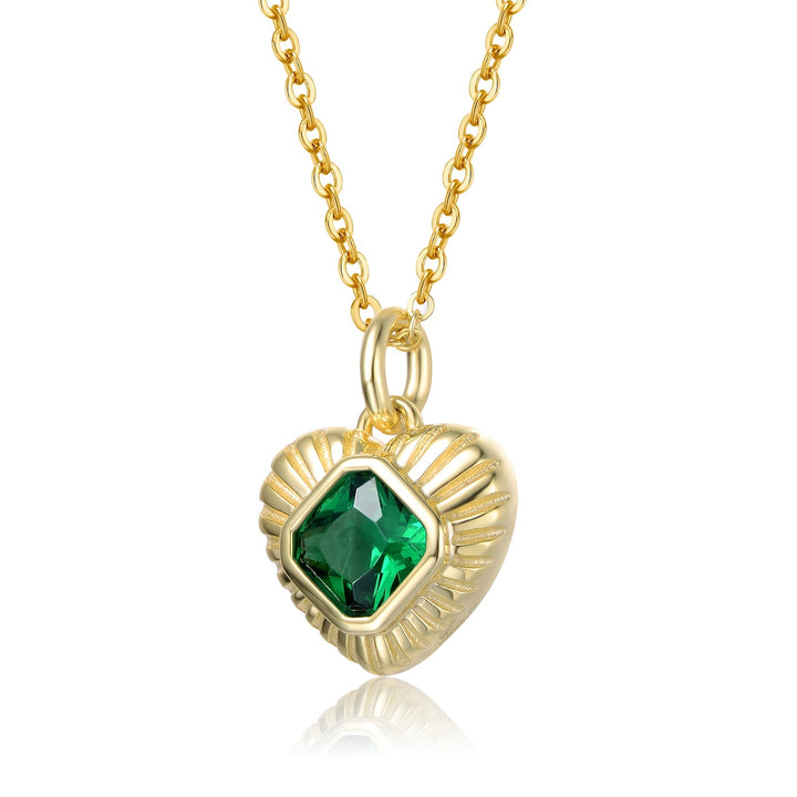 GV Sterling Silver 14k Yellow Gold Plated with Emerald Cubic Zirconia Sunray Heart Pendant Necklace