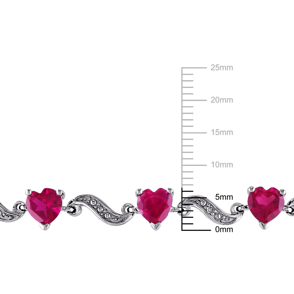 Mimi & Max Diamond and 9 1/10ct TGW Heart Shaped Created Ruby Bracelet in Sterling Silver