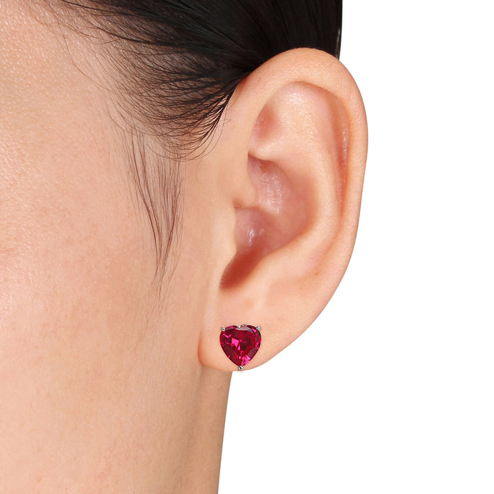 Sterling silver, 5 3/4ct TGW heart-shaped created rubies, prong-set, butterfly backs.